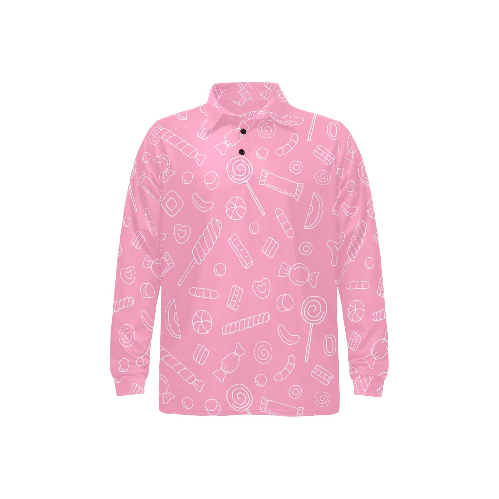 Sweet candy pink background Men's Long Sleeve Polo Shirt