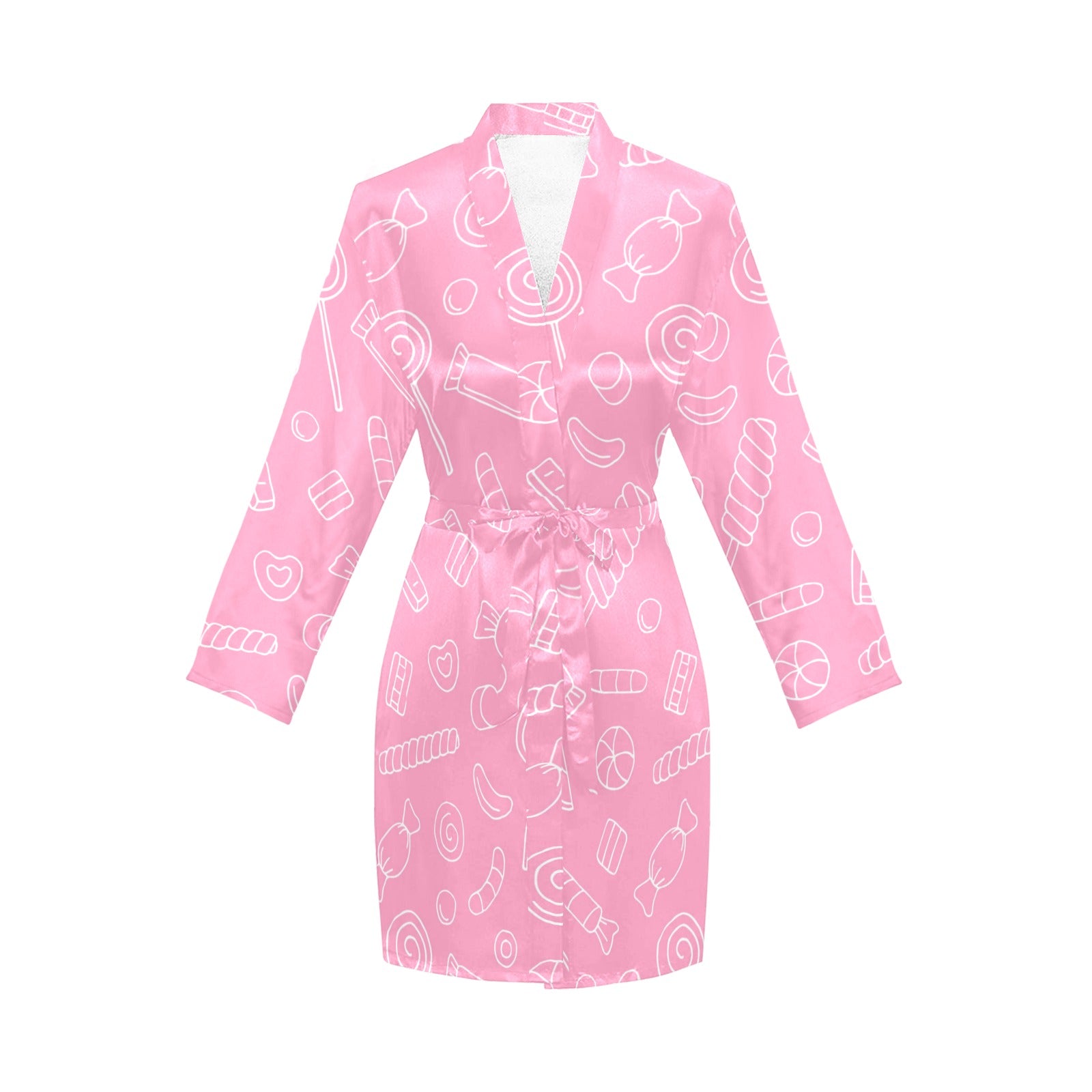 Sweet candy pink background Women's Long Sleeve Belted Night Robe