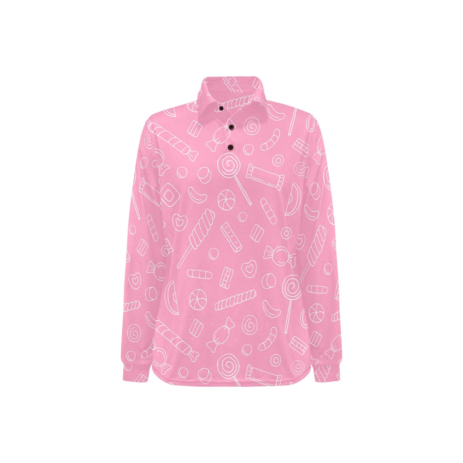 Sweet candy pink background Women's Long Sleeve Polo Shirt