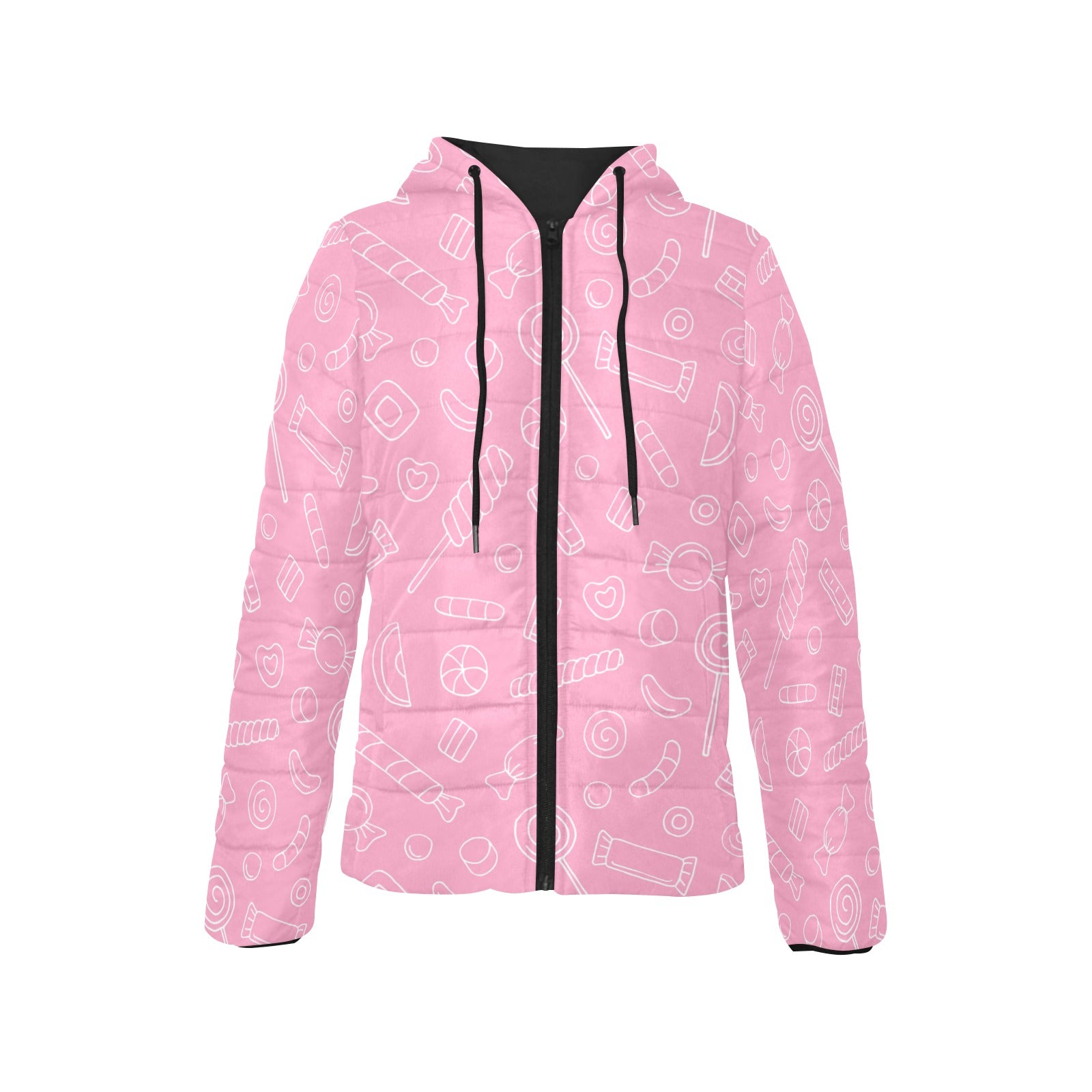 Sweet candy pink background Women's Padded Hooded Jacket