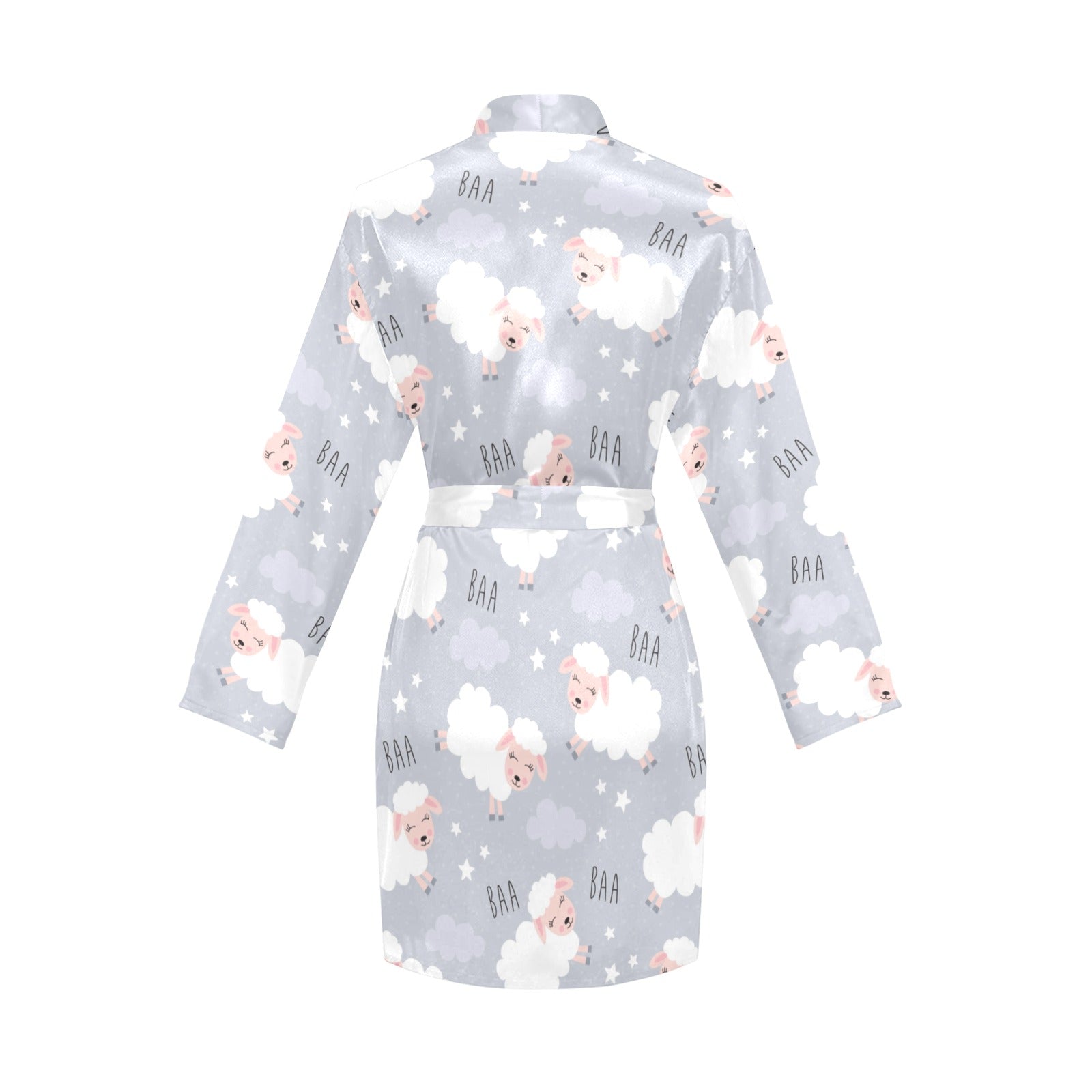 Sweet dreams sheep pattern Women's Long Sleeve Belted Night Robe