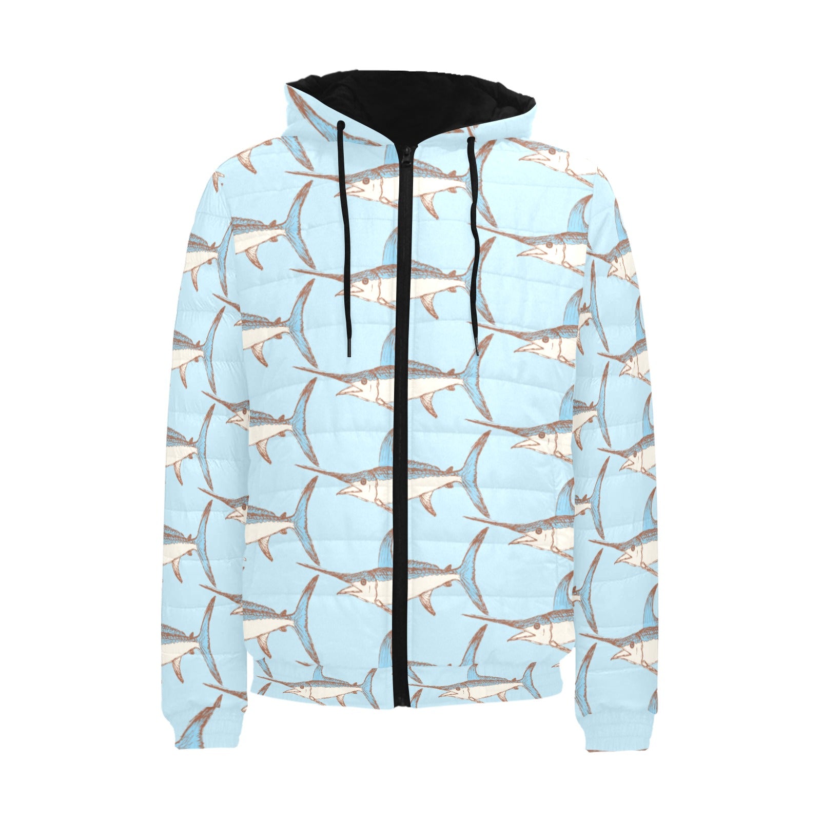 Swordfish Pattern Print Design 01 Men's Padded Hooded Jacket