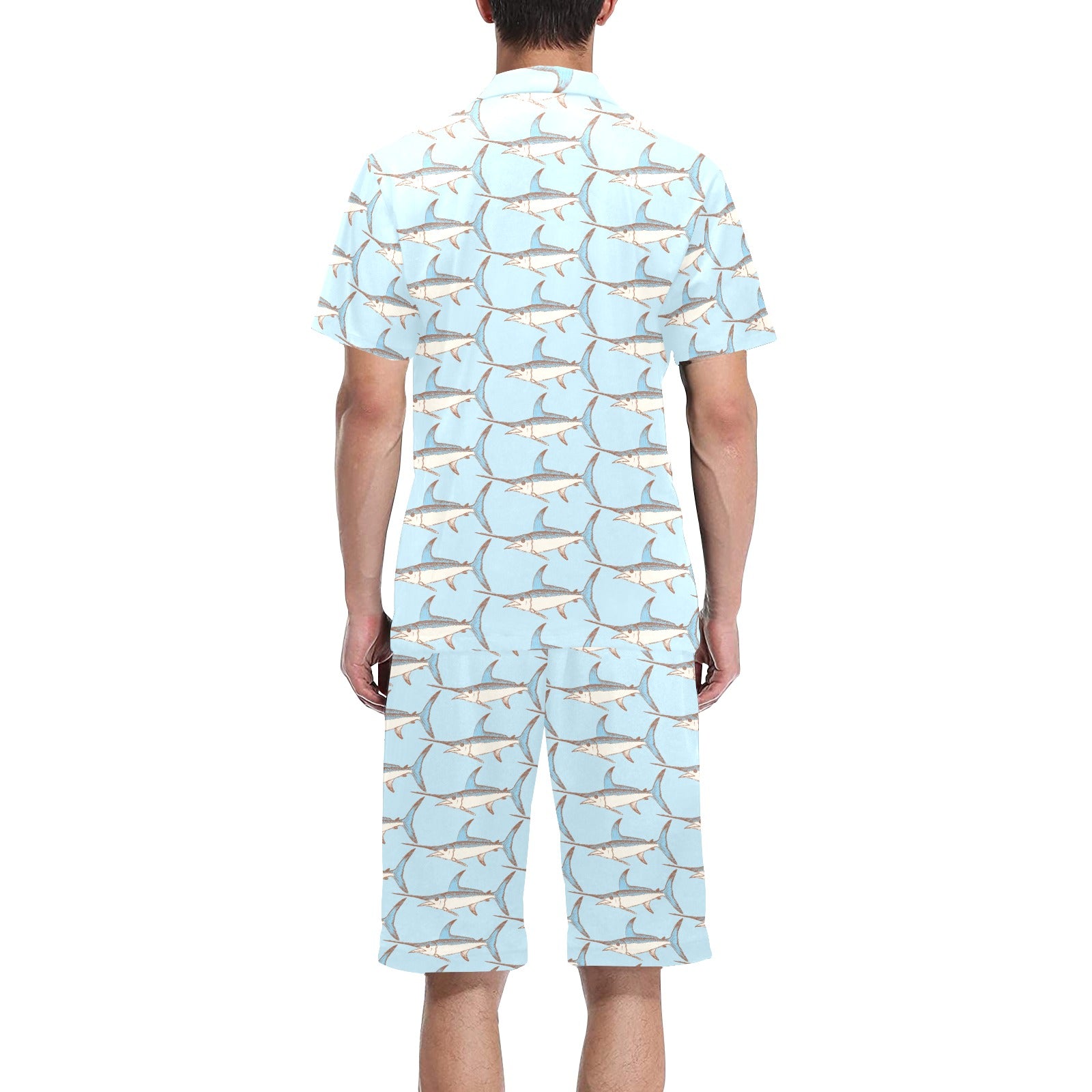 Swordfish Pattern Print Design 01 Men's V-Neck Short Pajama Set