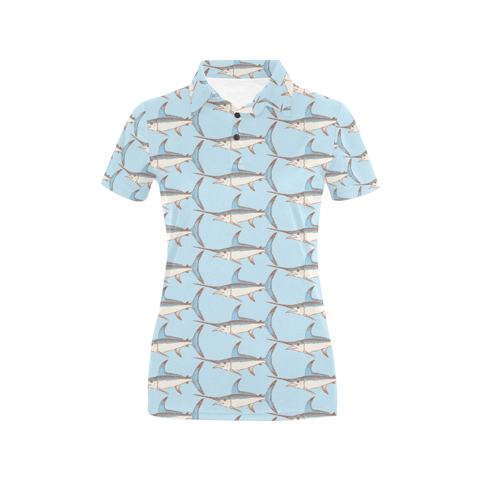Swordfish Pattern Print Design 01 Women's All Over Print Polo Shirt