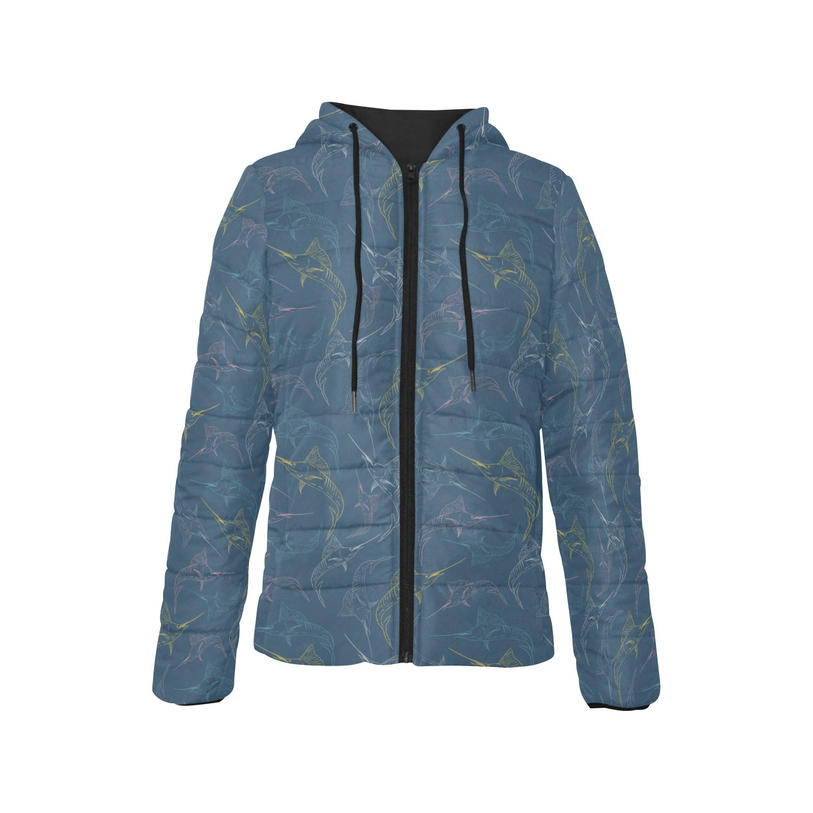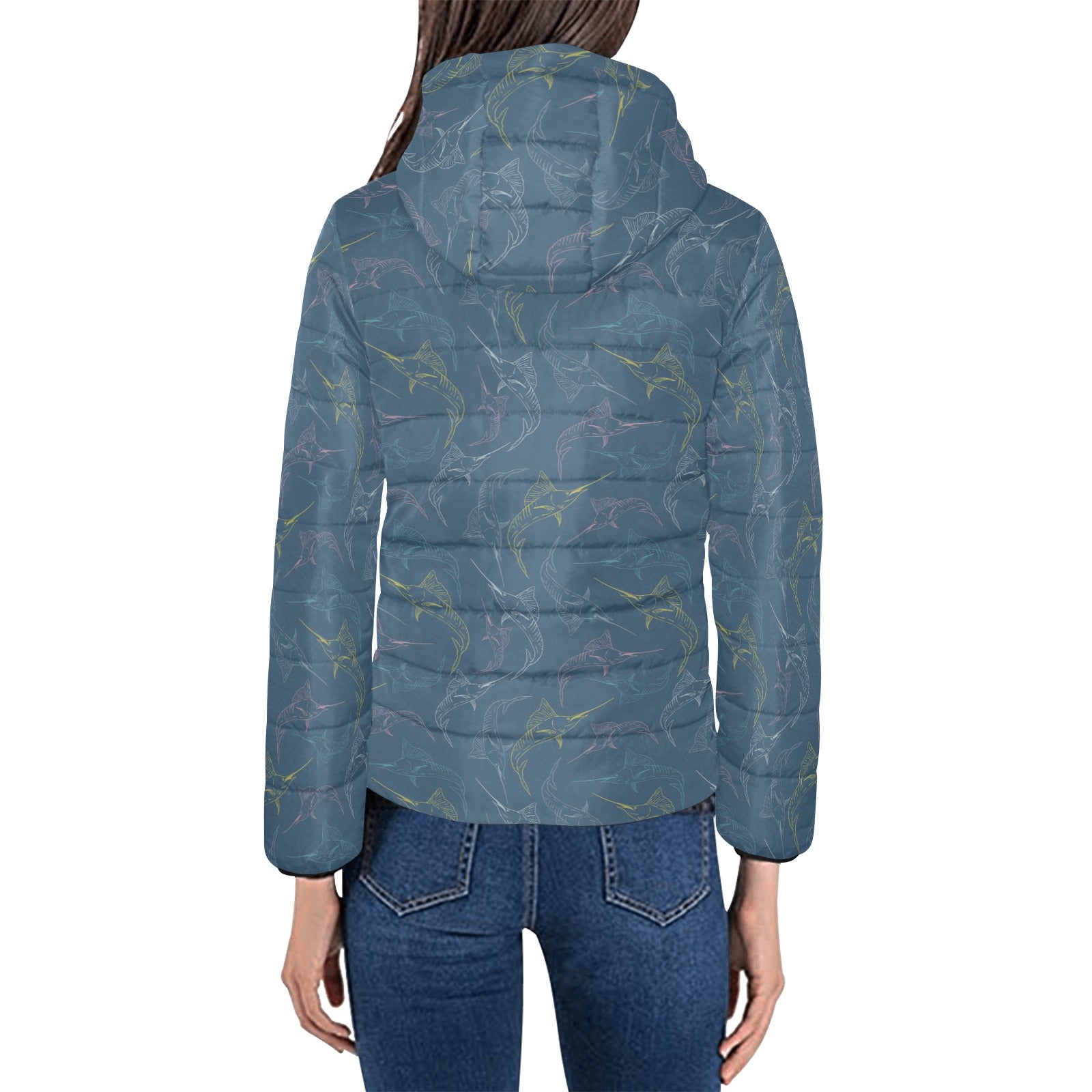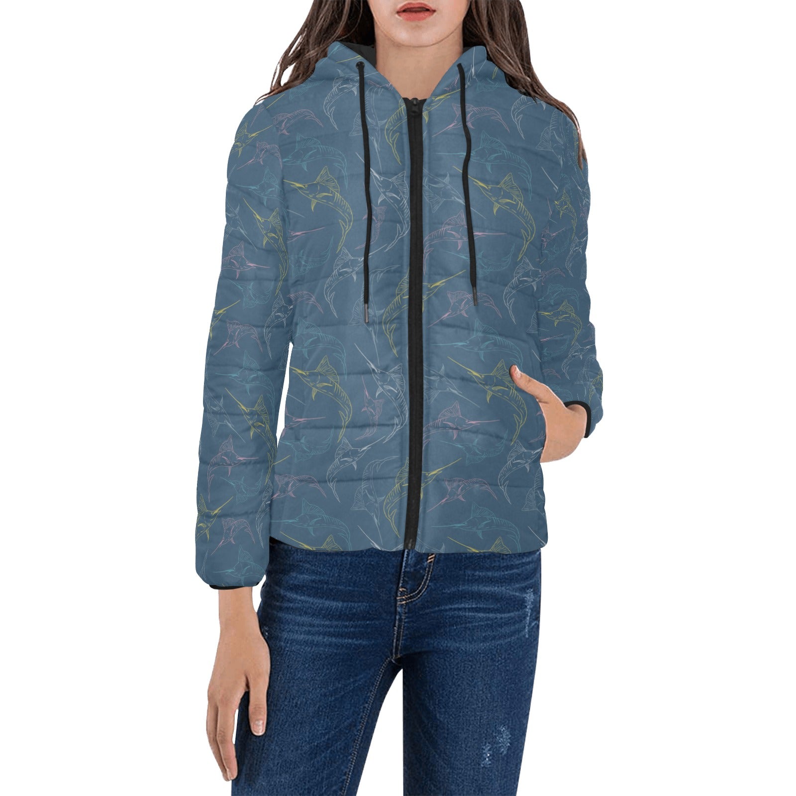 Swordfish Pattern Print Design 02 Women's Padded Hooded Jacket