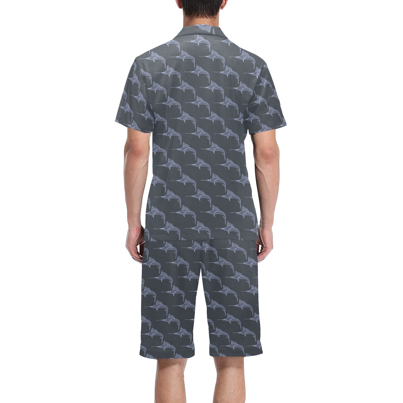 Swordfish Pattern Print Design 03 Men's V-Neck Short Pajama Set