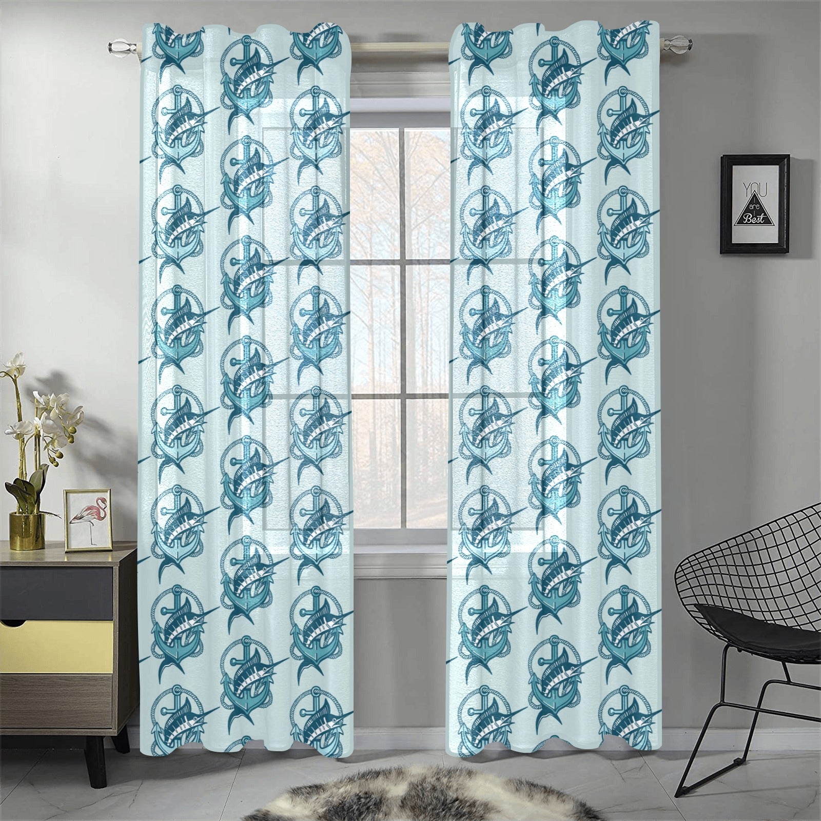 Swordfish Pattern Print Design 05 Gauze Curtain