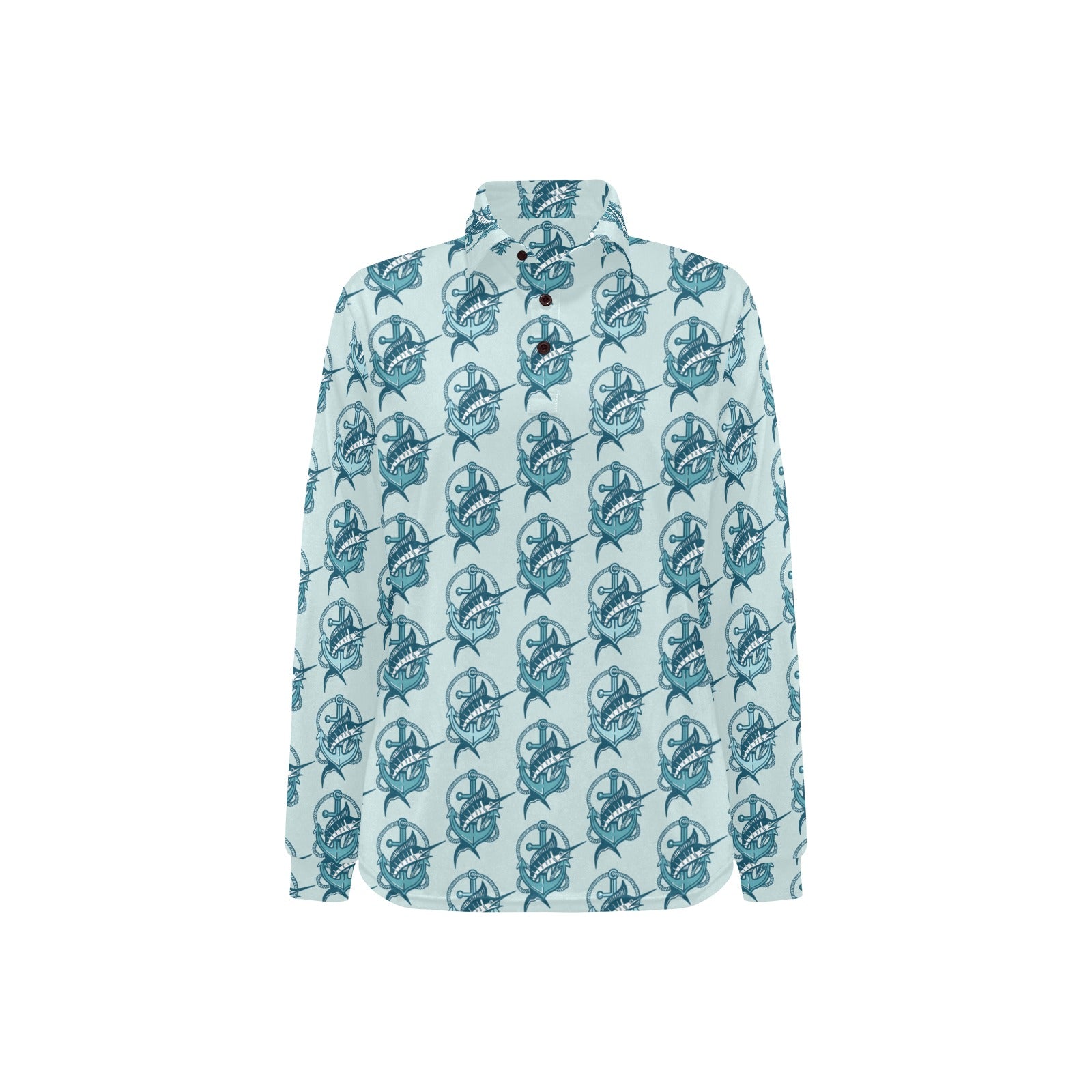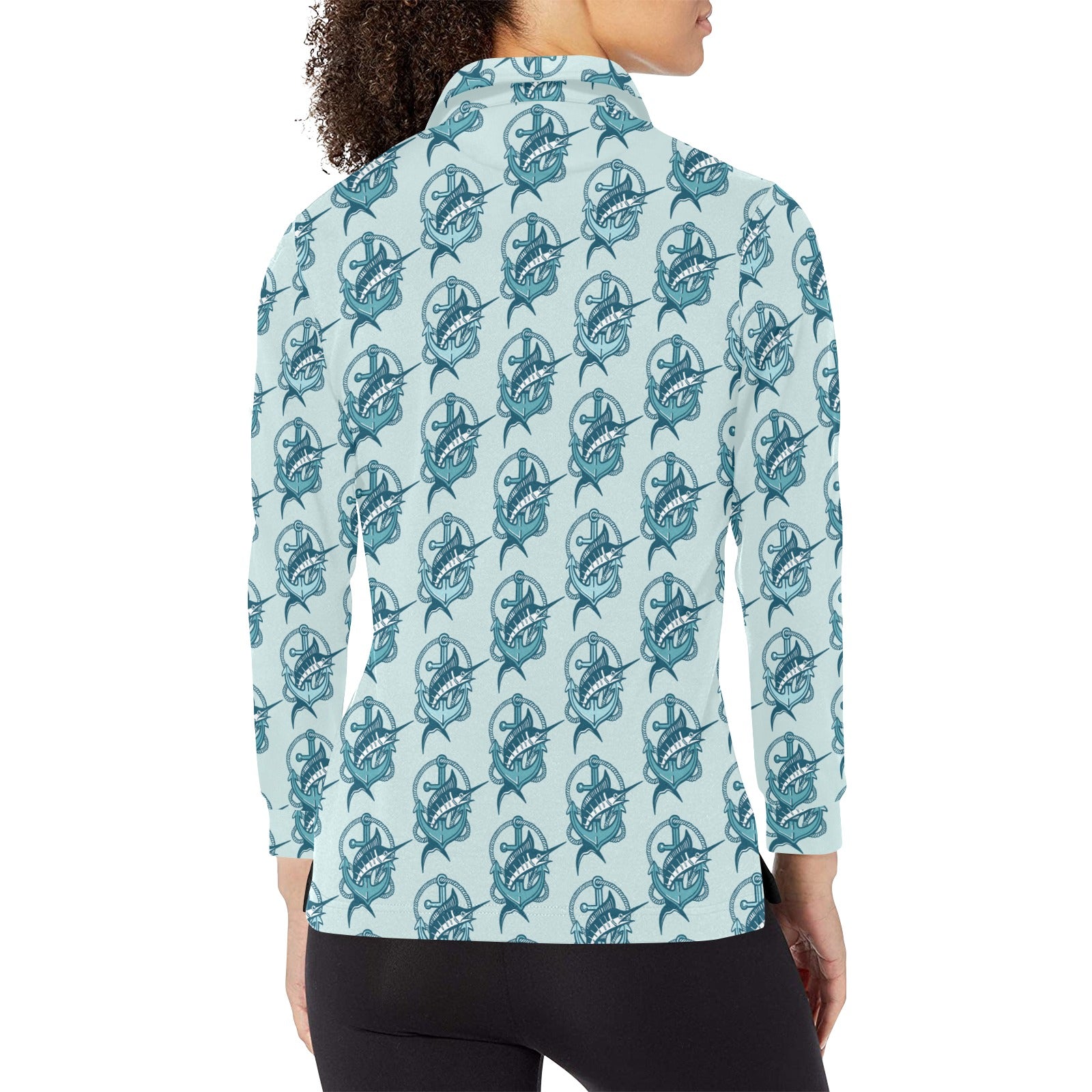 Swordfish Pattern Print Design 05 Women's Long Sleeve Polo Shirt