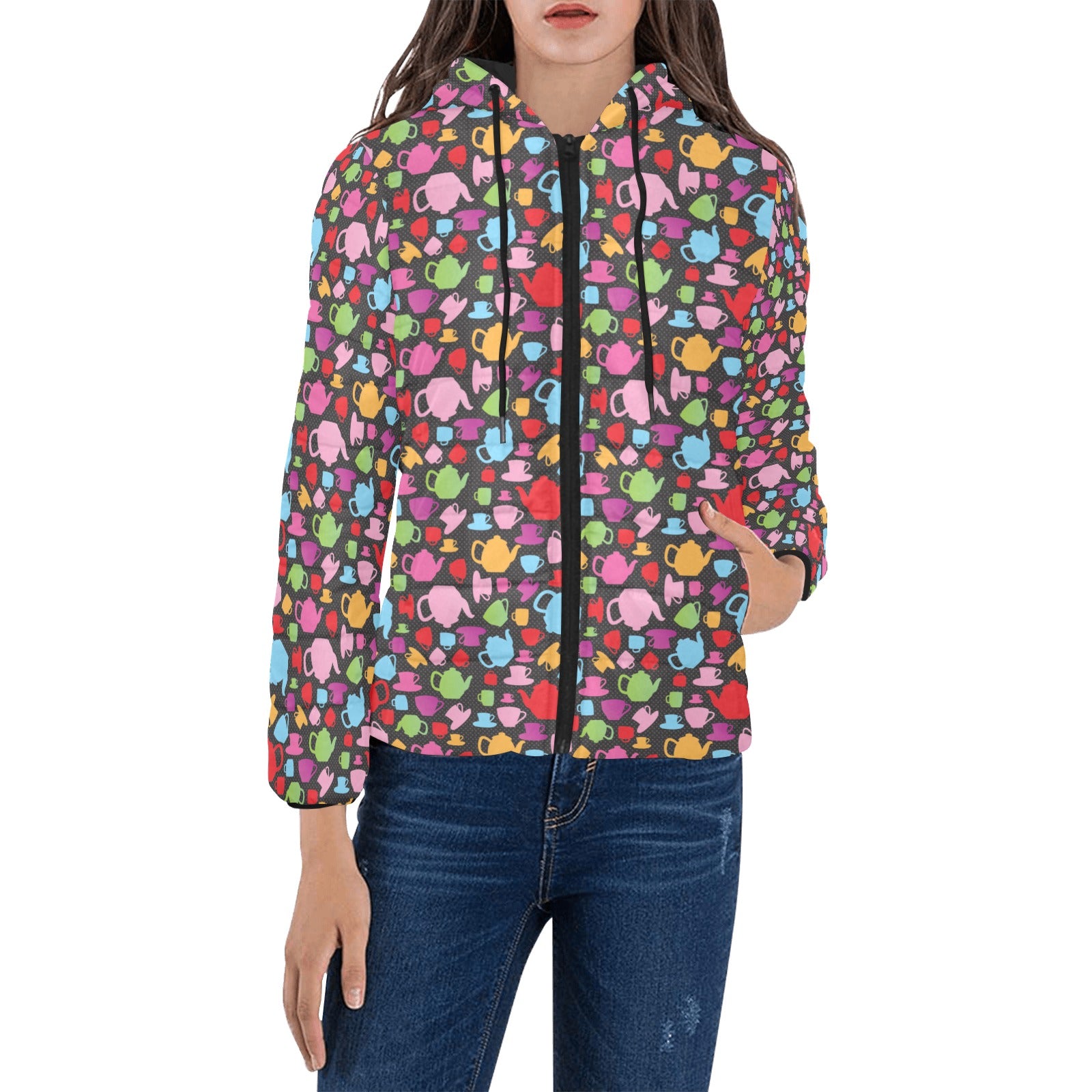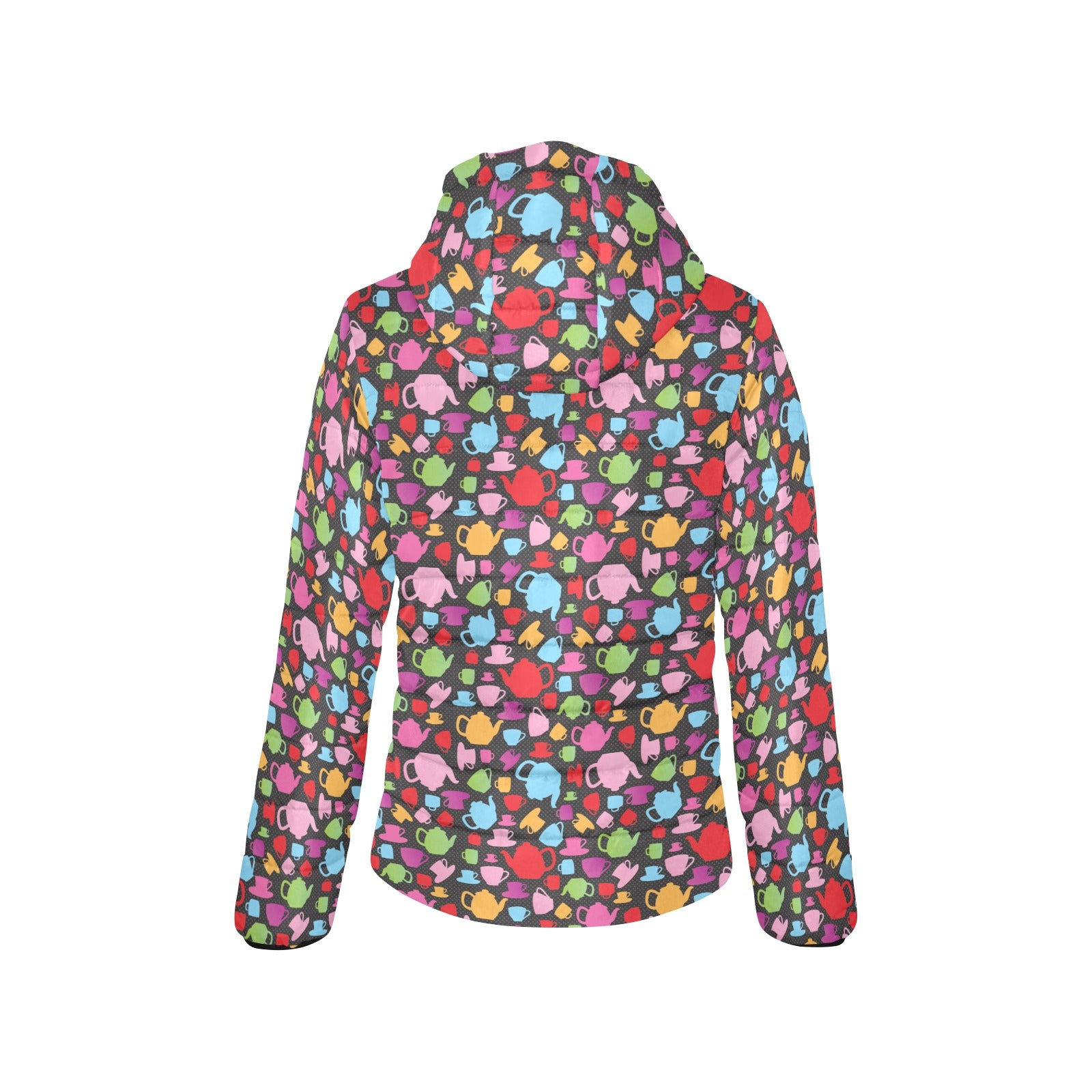 Tea pots Pattern Print Design 01 Women's Padded Hooded Jacket