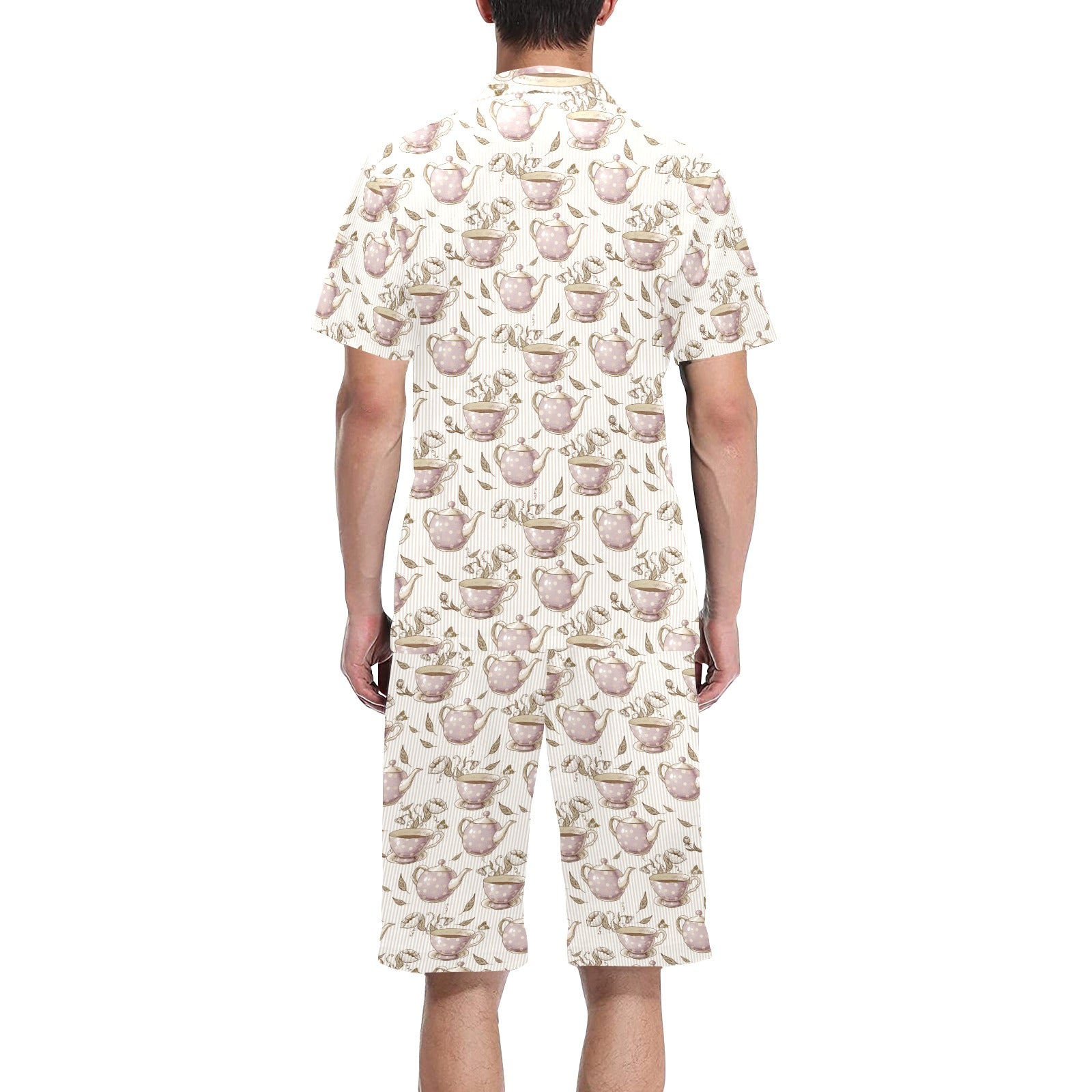 Tea pots Pattern Print Design 03 Men's V-Neck Short Pajama Set
