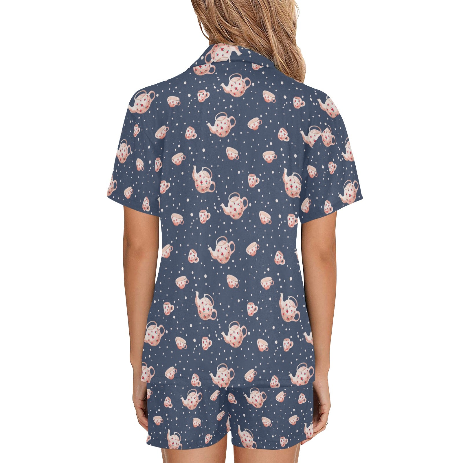 Tea pots Pattern Print Design 04 Women's V-Neck Short Pajama Set