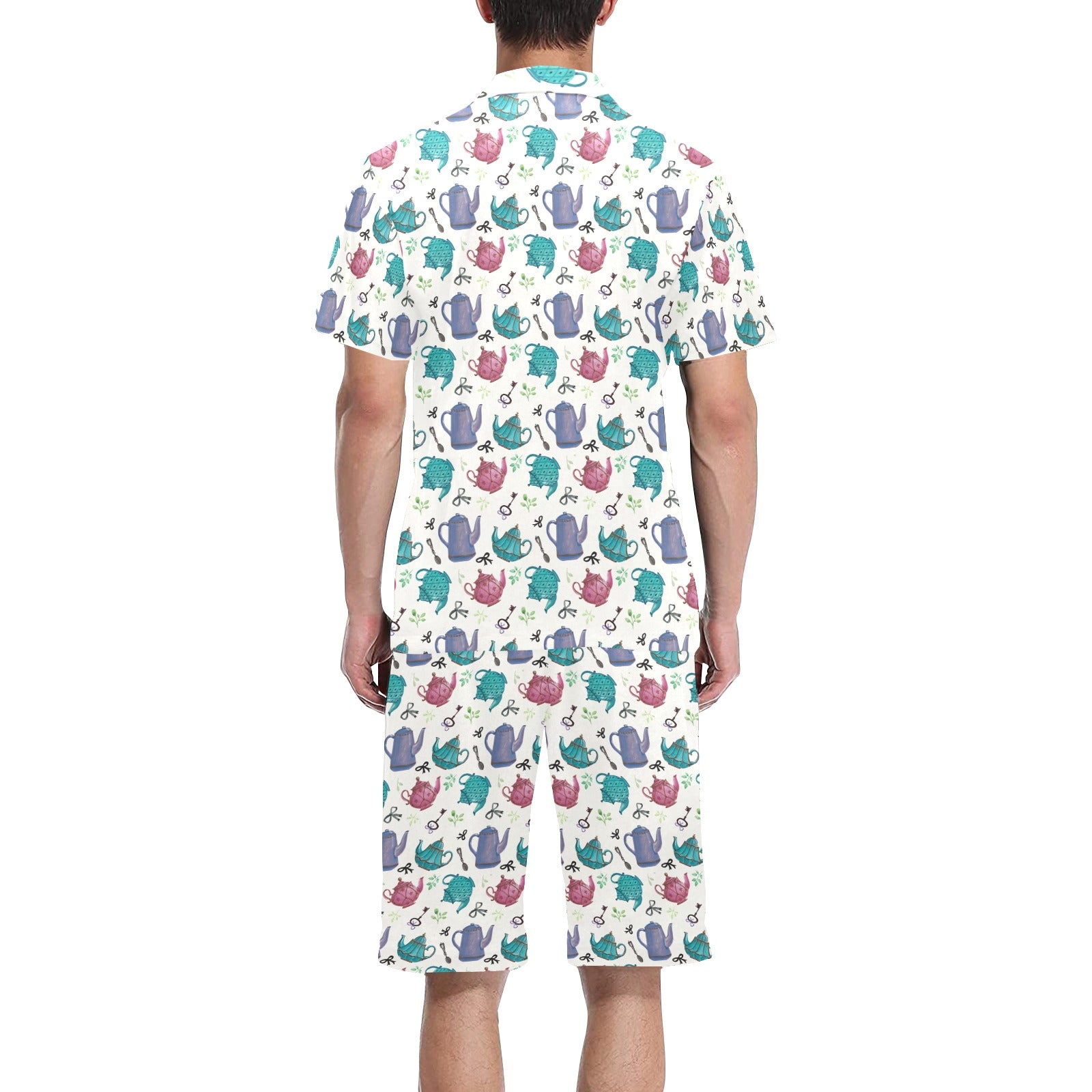 Tea pots Pattern Print Design 05 Men's V-Neck Short Pajama Set