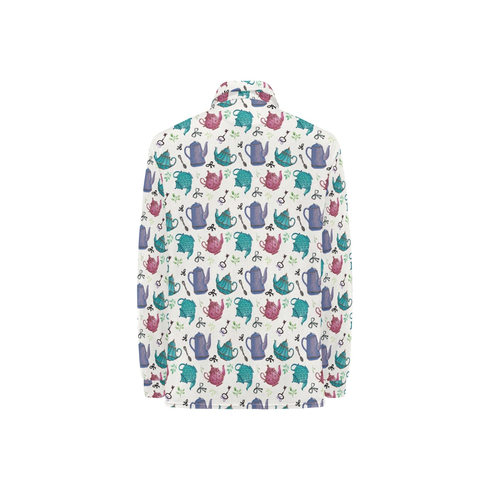 Tea pots Pattern Print Design 05 Women's Long Sleeve Polo Shirt