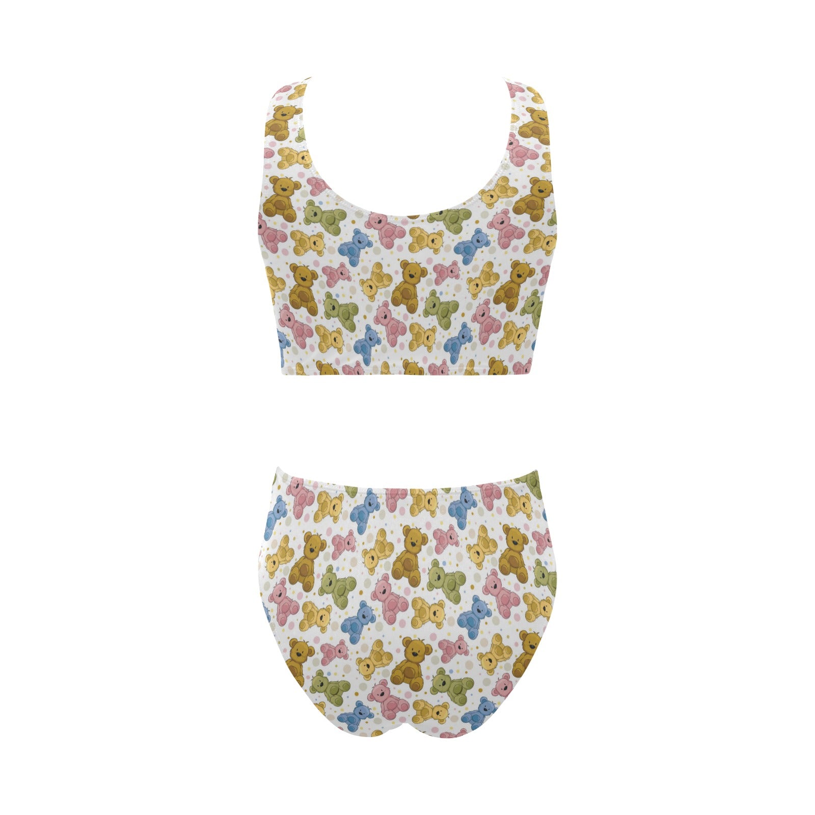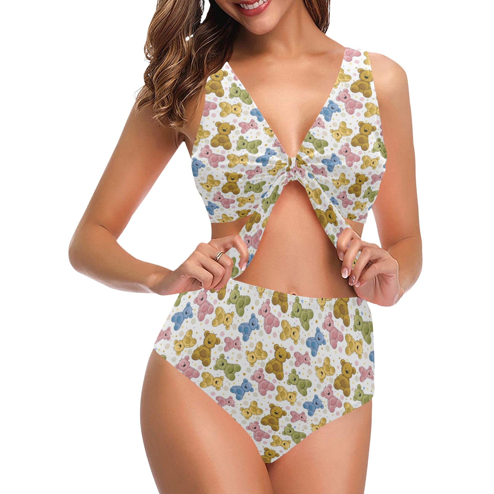Teddy Bear Pattern Print Design 01 Chest Bowknot High Waisted Bikini Swimsuit