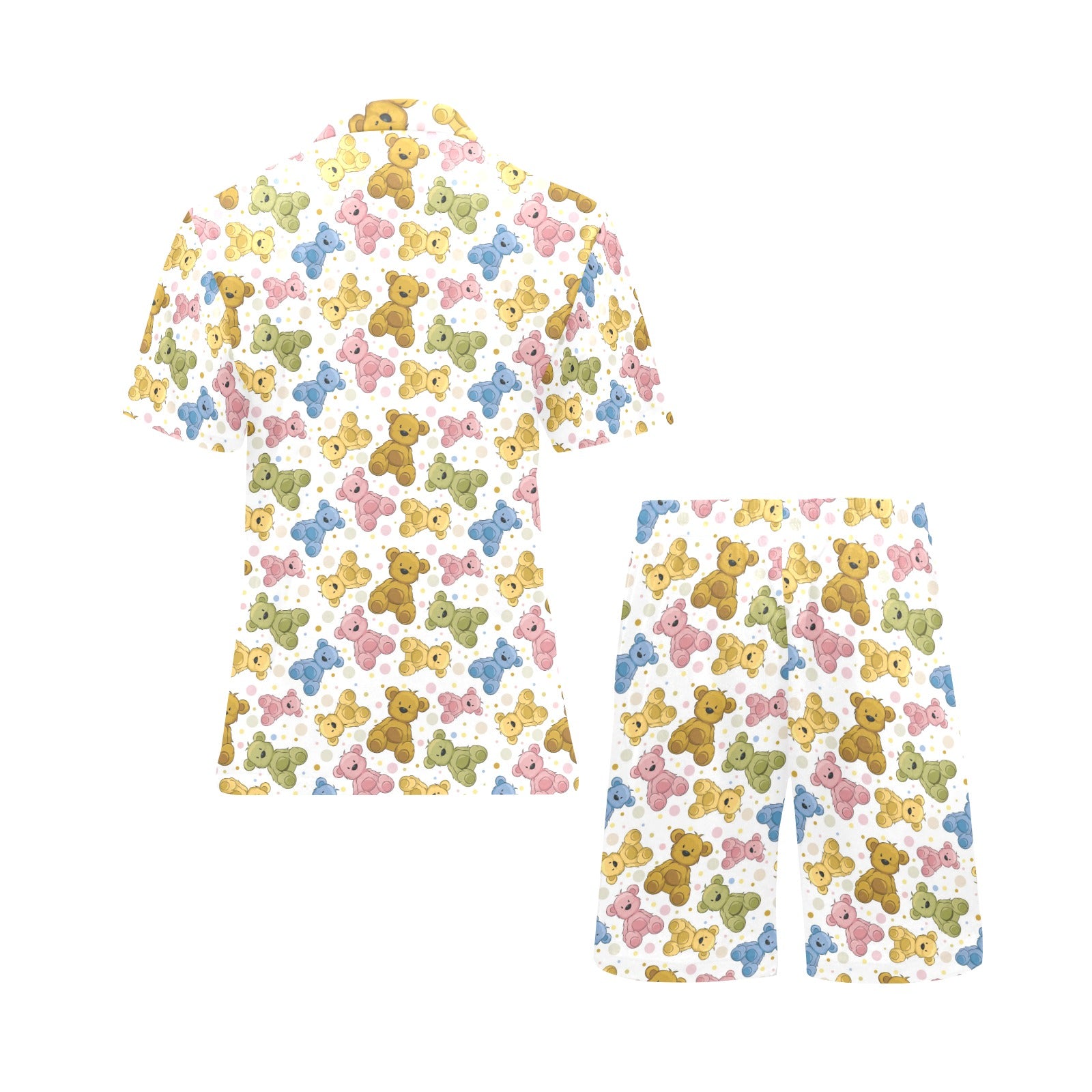 Teddy Bear Pattern Print Design 01 Men's V-Neck Short Pajama Set