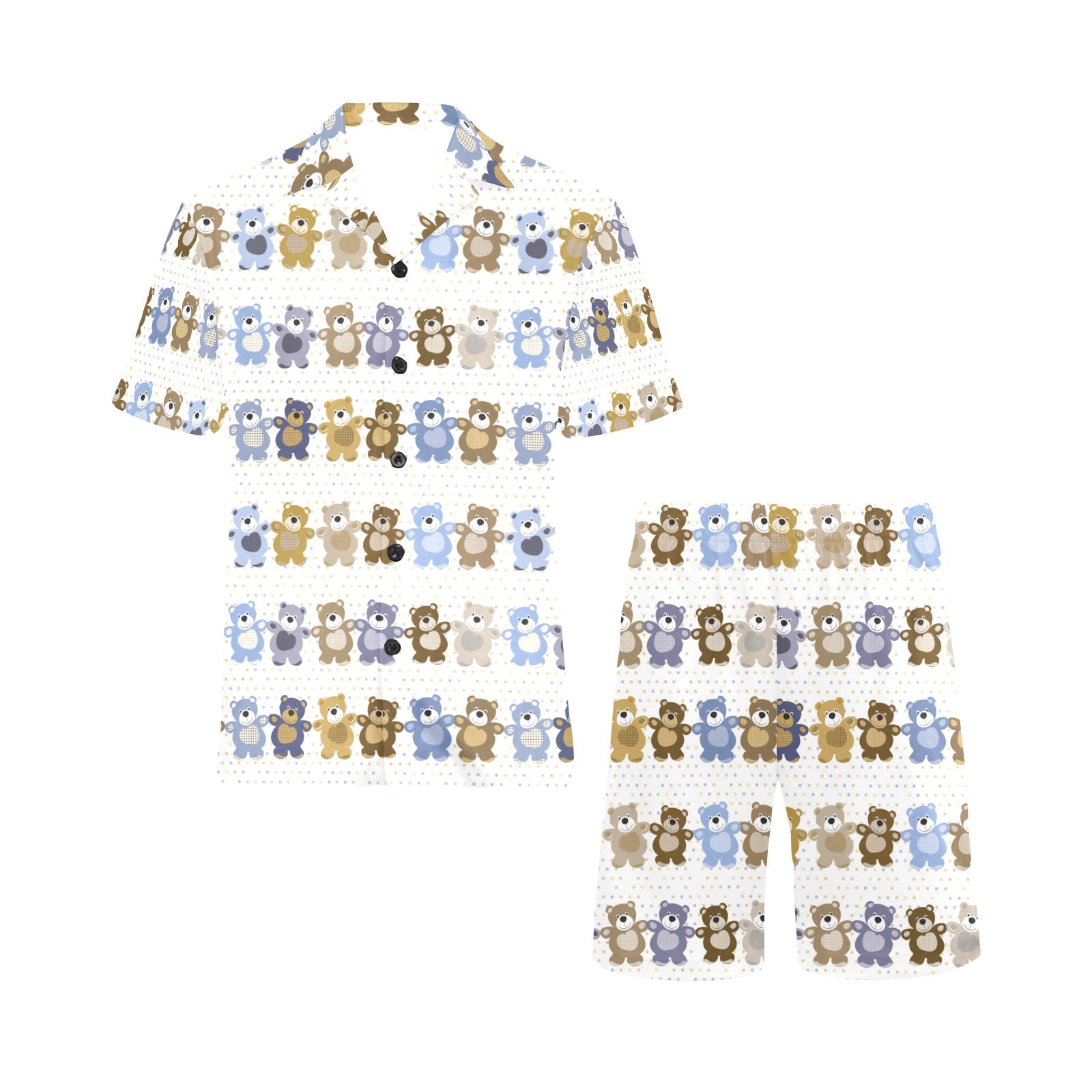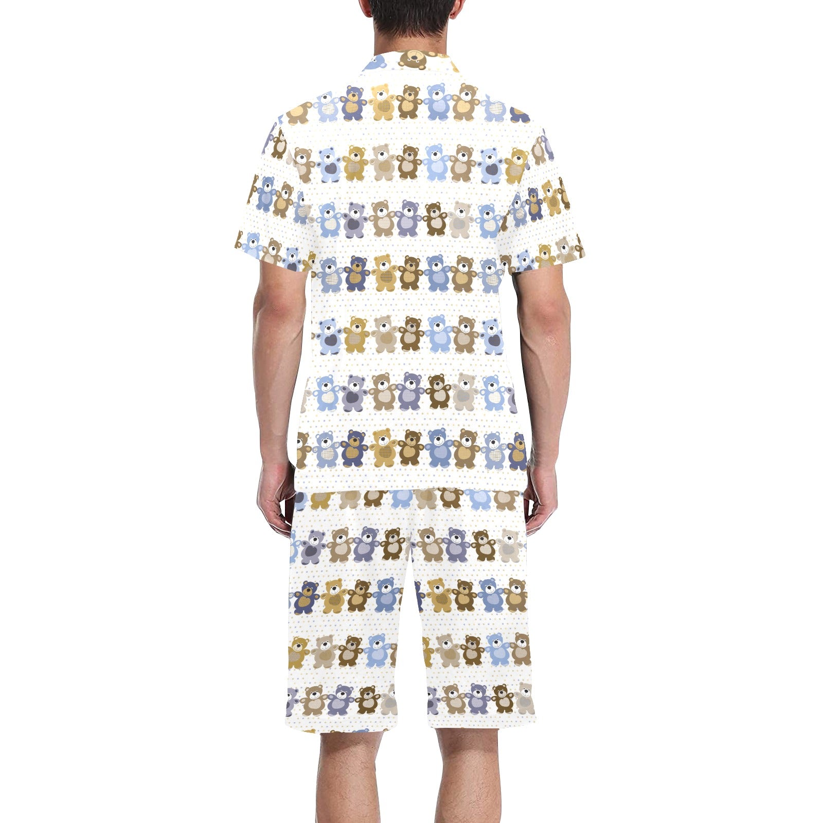 Teddy Bear Pattern Print Design 02 Men's V-Neck Short Pajama Set
