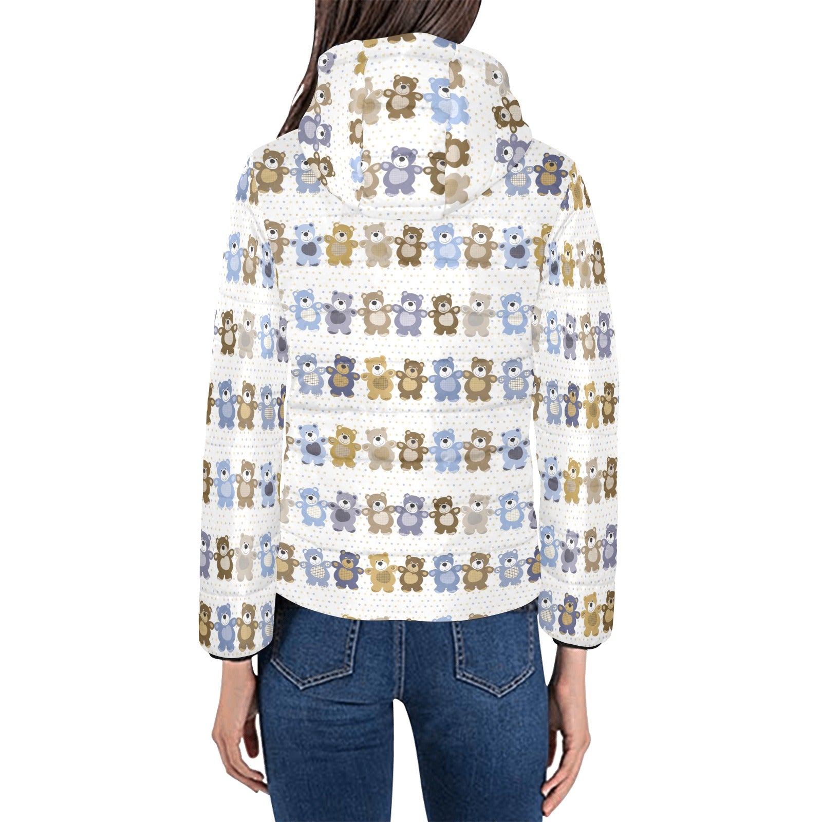 Teddy Bear Pattern Print Design 02 Women's Padded Hooded Jacket