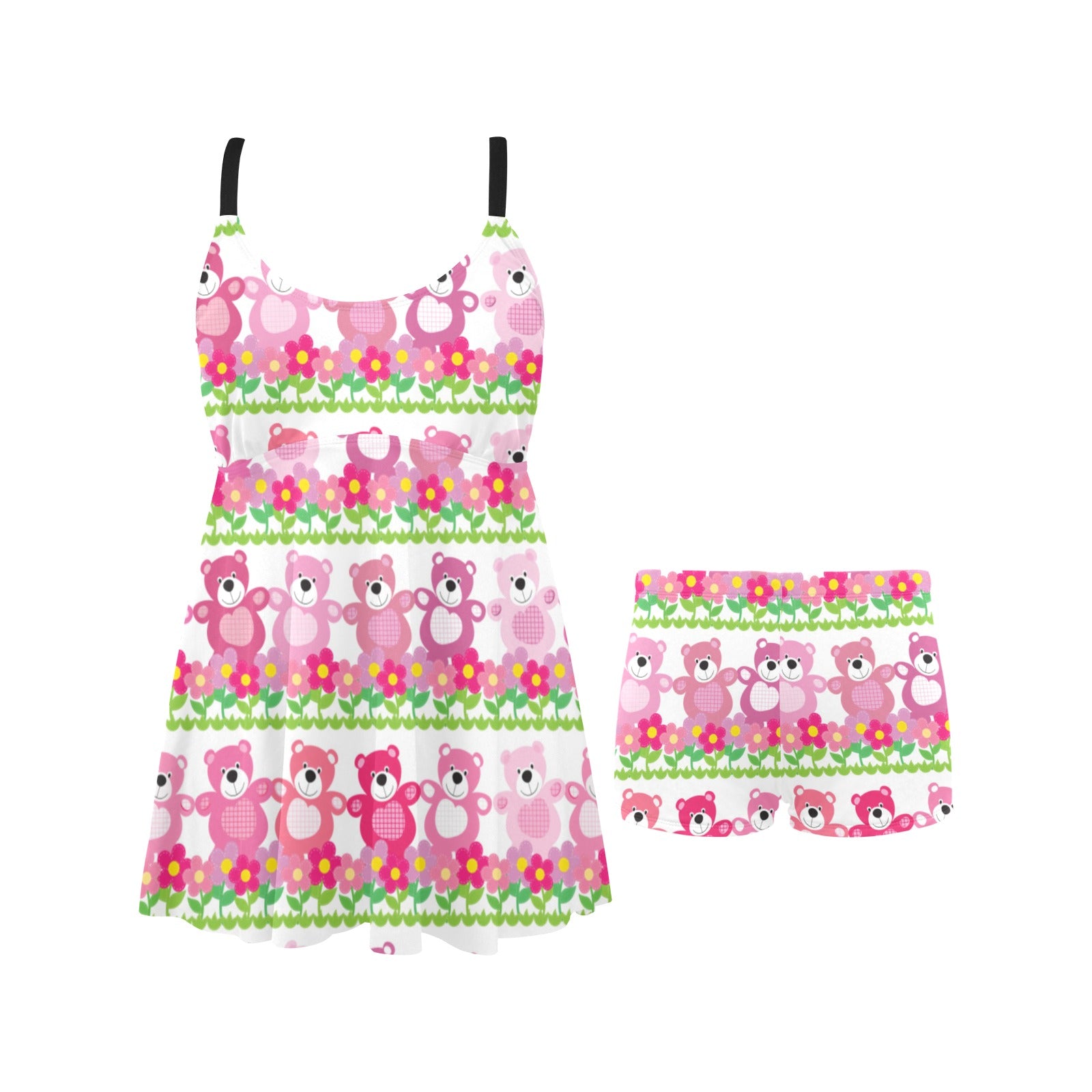 Teddy Bear Pattern Print Design 04 Chest Sexy Pleated Two Piece Swim Dress