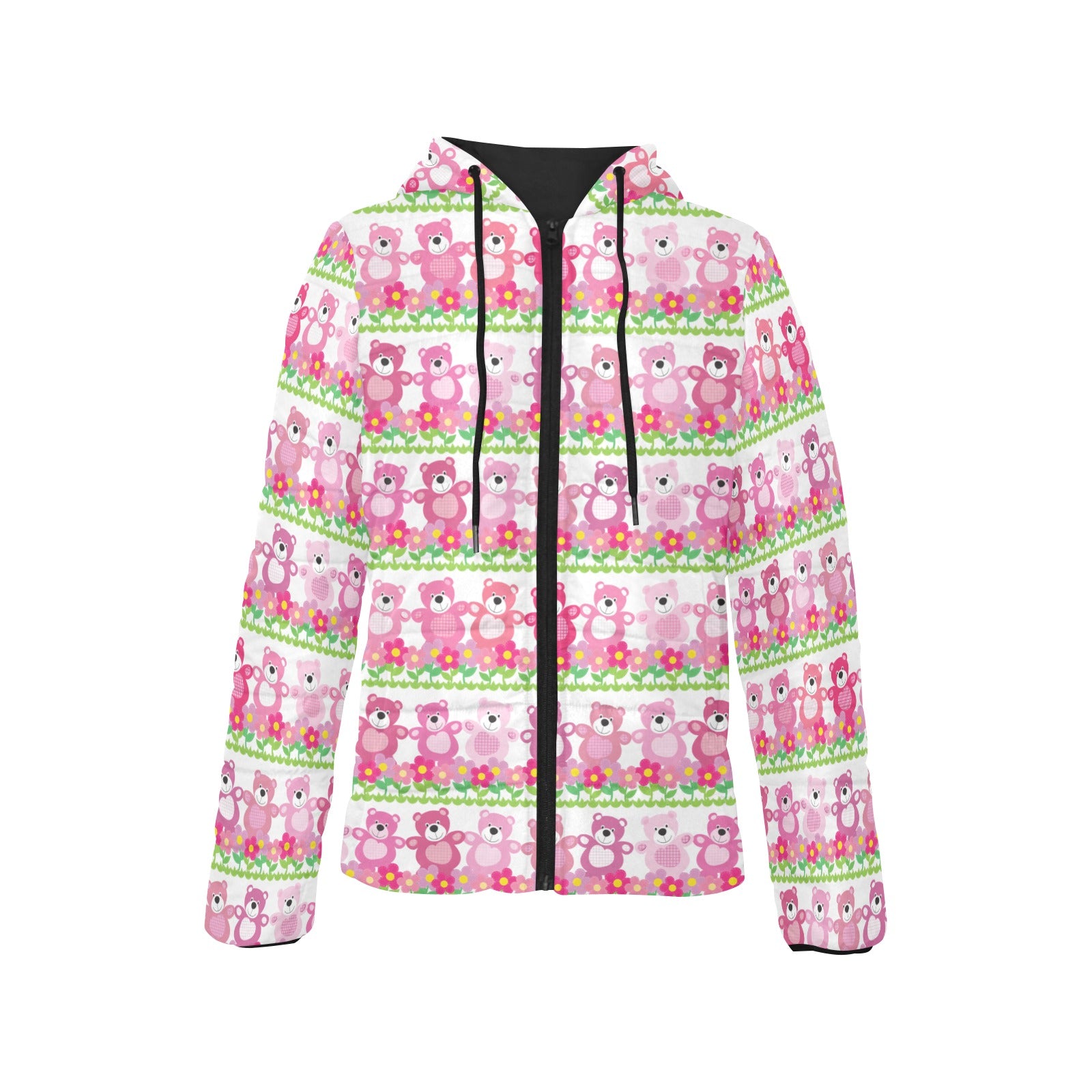 Teddy Bear Pattern Print Design 04 Women's Padded Hooded Jacket