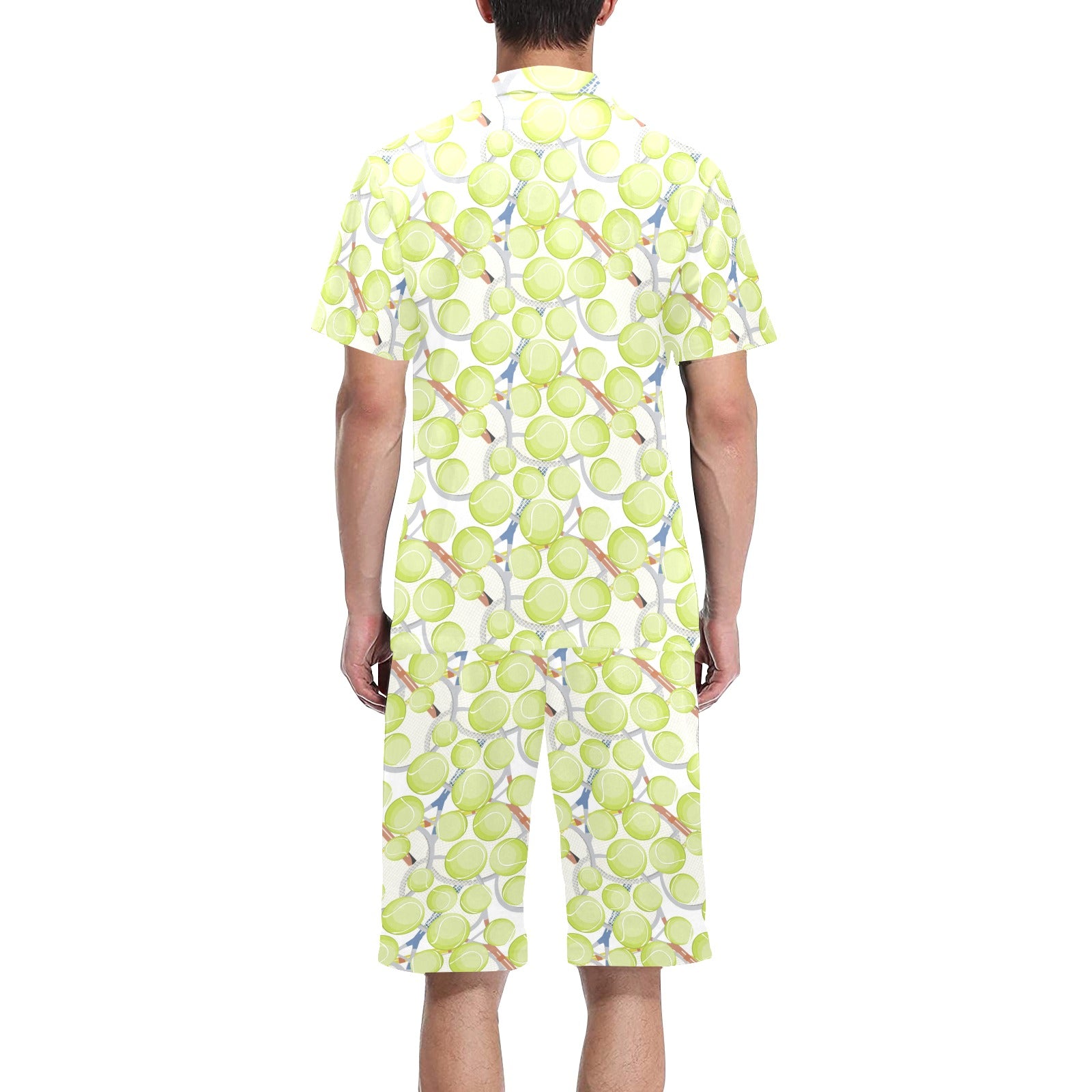 Tennis Pattern Print Design 01 Men's V-Neck Short Pajama Set