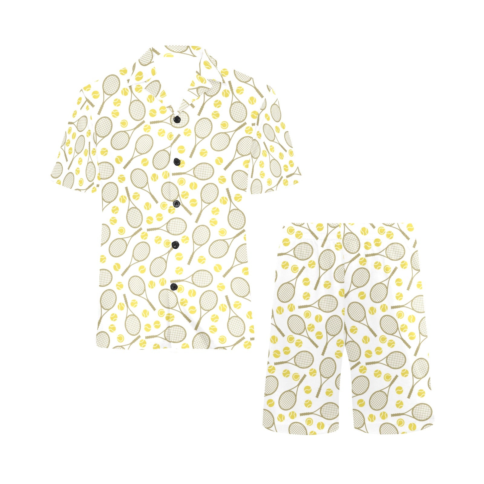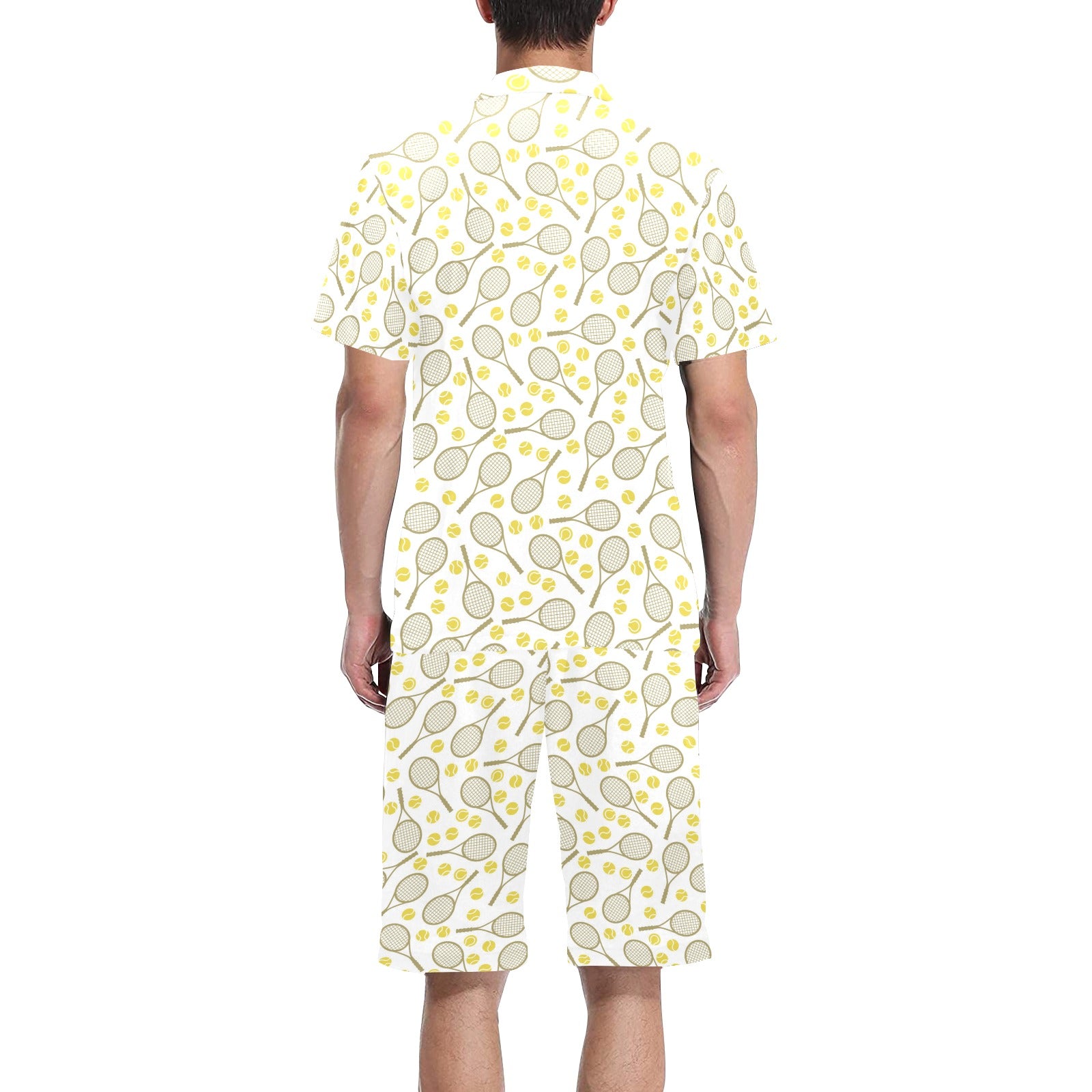 Tennis Pattern Print Design 02 Men's V-Neck Short Pajama Set