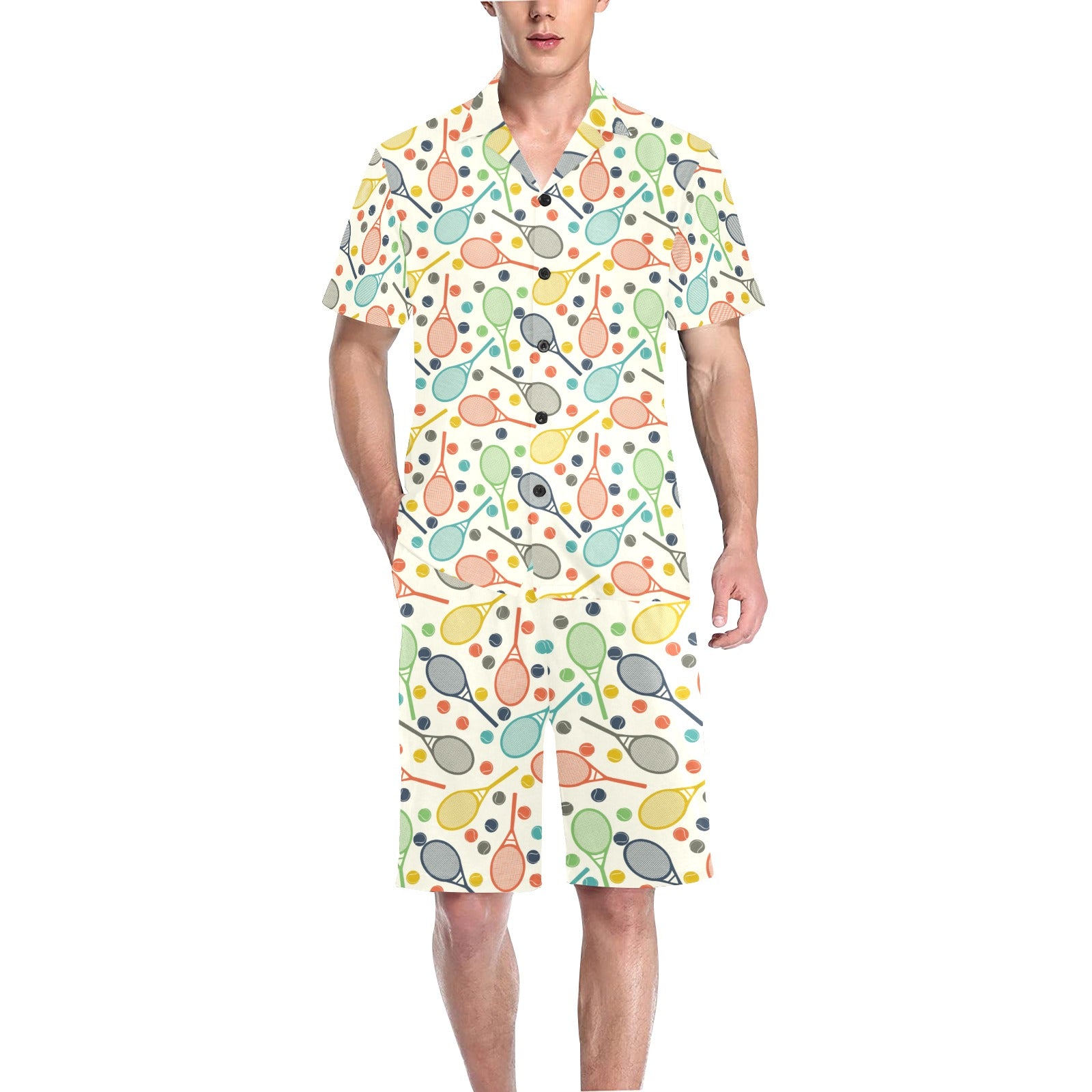 Tennis Pattern Print Design 03 Men's V-Neck Short Pajama Set