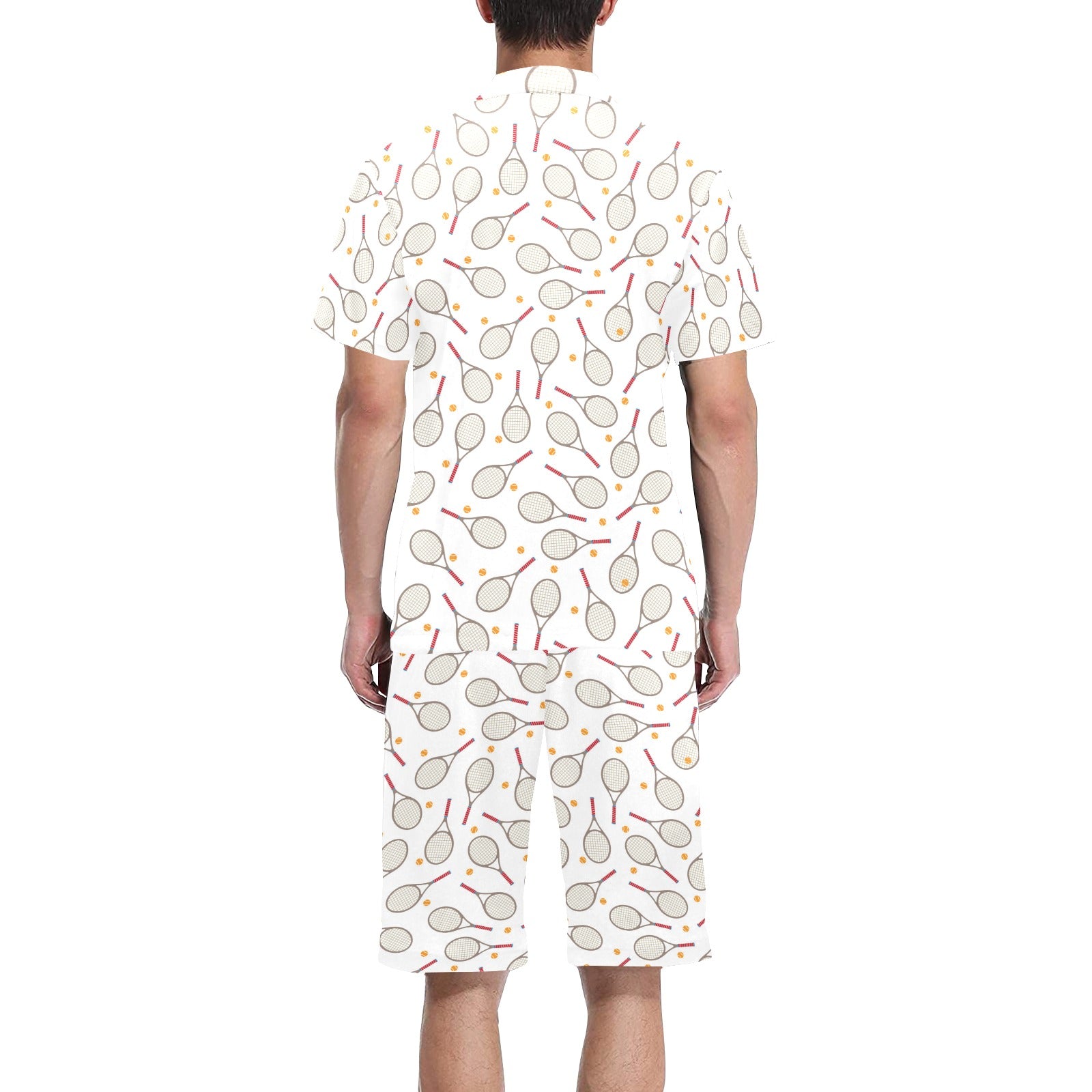 Tennis Pattern Print Design 04 Men's V-Neck Short Pajama Set