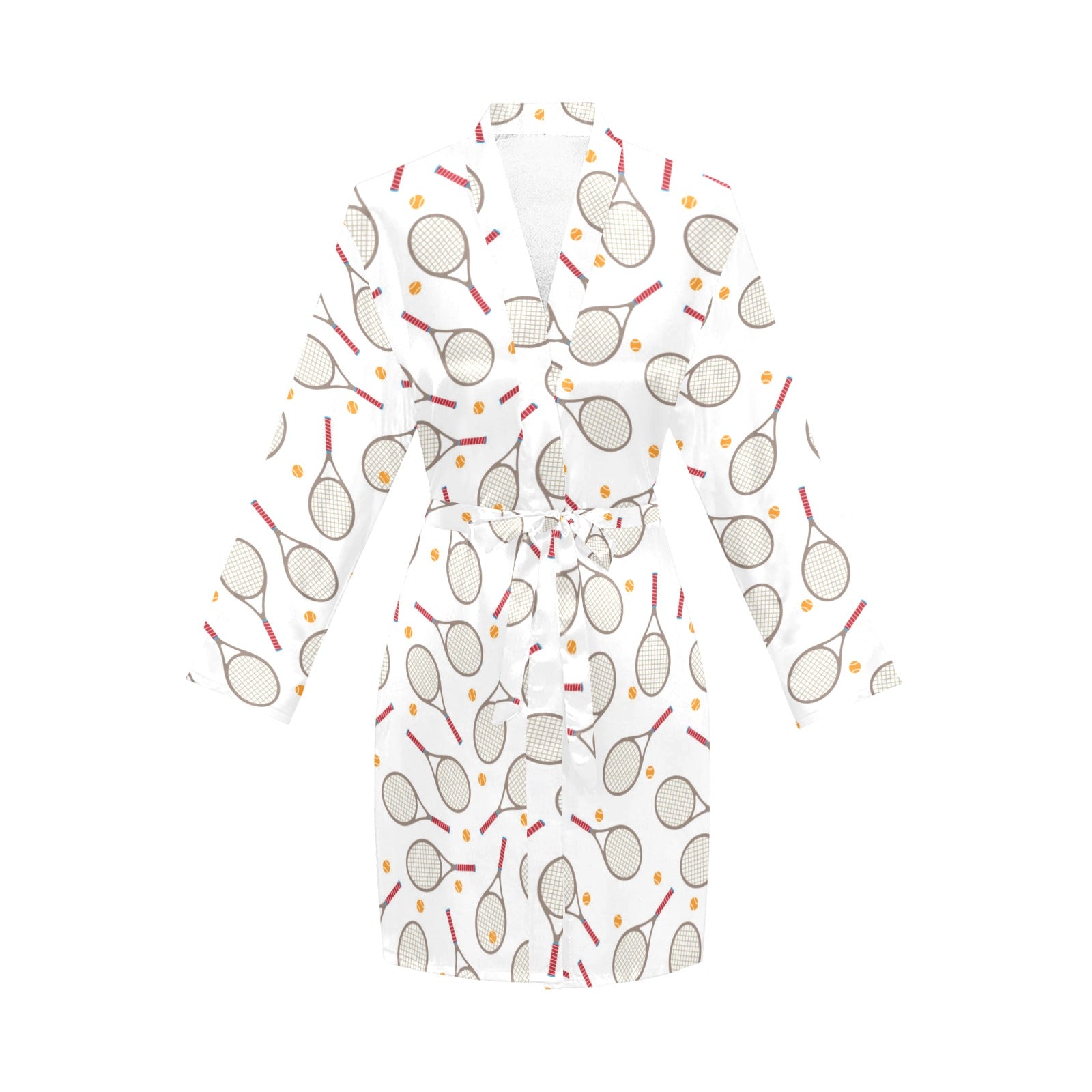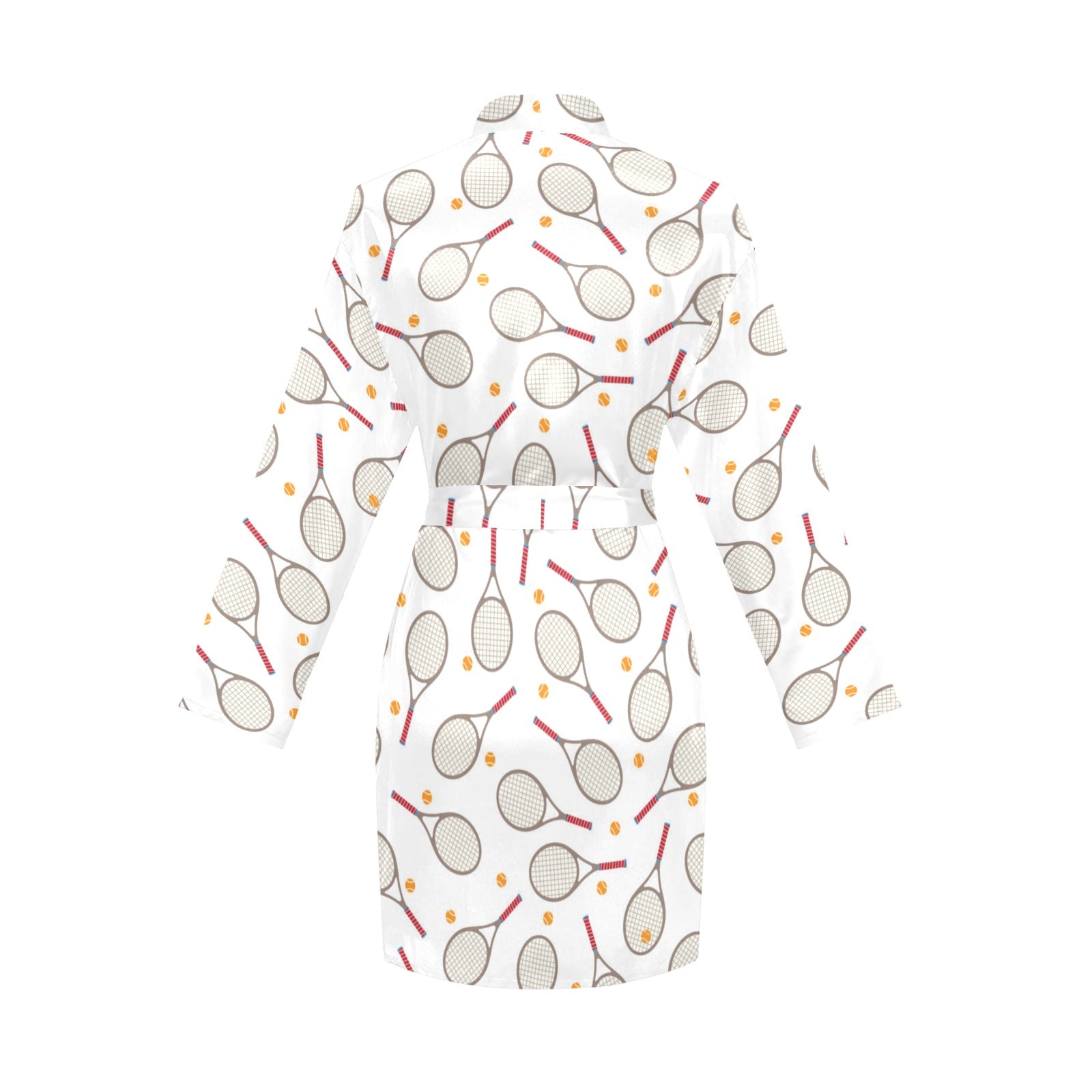 Tennis Pattern Print Design 04 Women's Long Sleeve Belted Night Robe