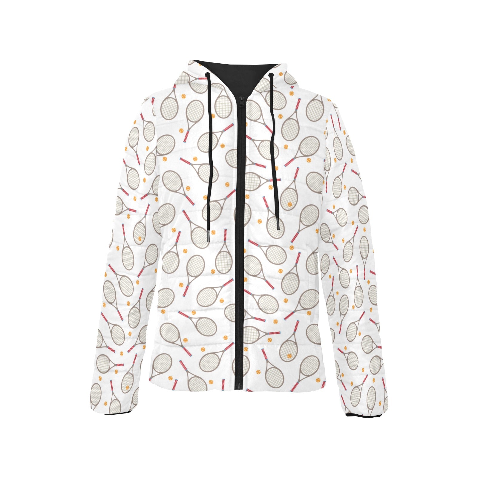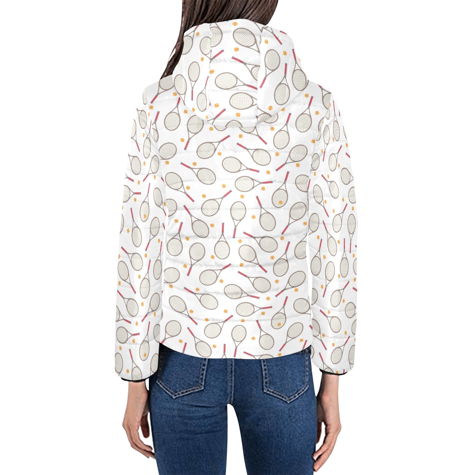 Tennis Pattern Print Design 04 Women's Padded Hooded Jacket