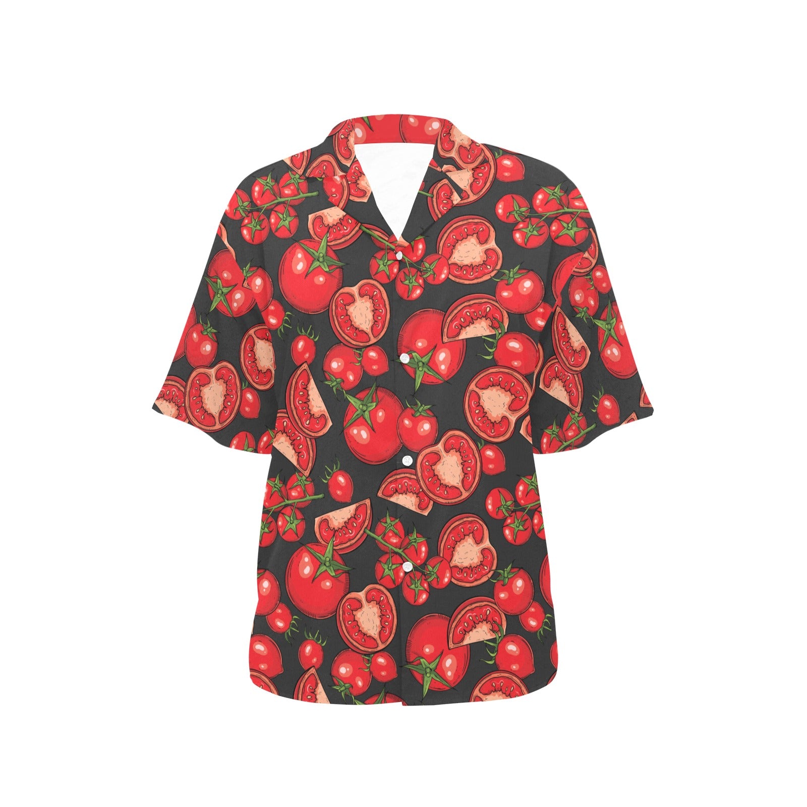 Tomato black background Women's All Over Print Hawaiian Shirt
