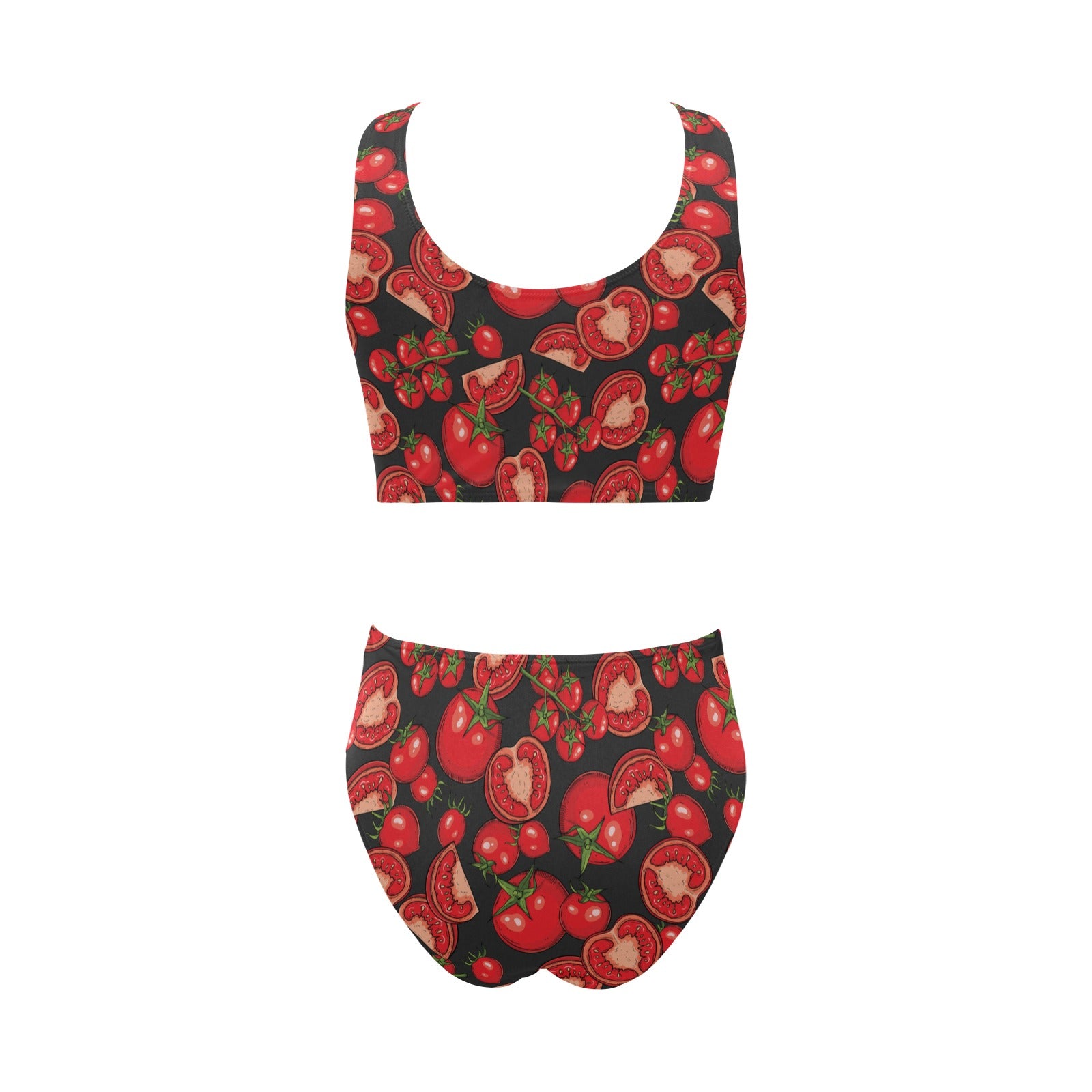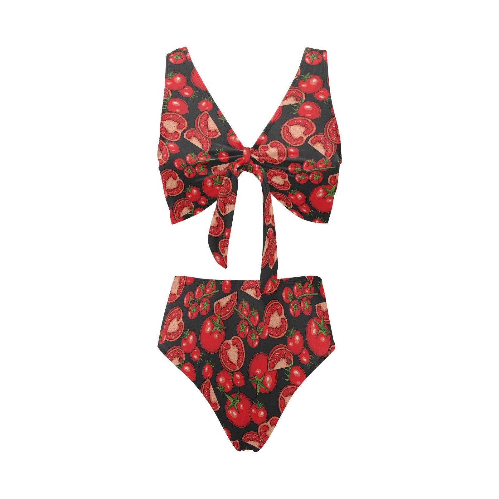 Tomato black background Chest Bowknot High Waisted Bikini Swimsuit