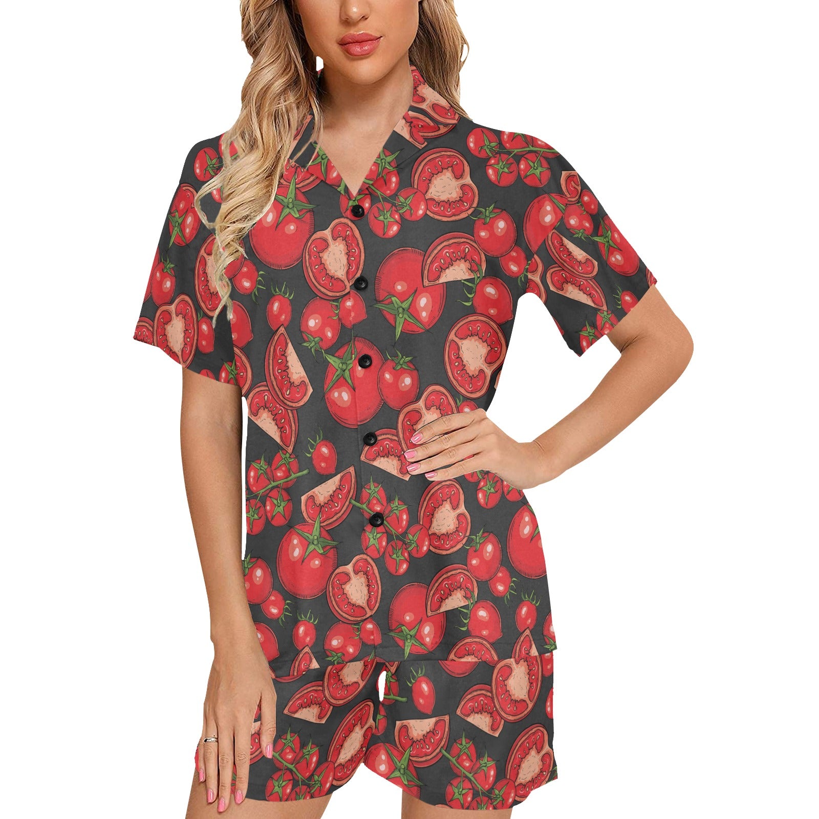 Tomato black background Women's V-Neck Short Pajama Set