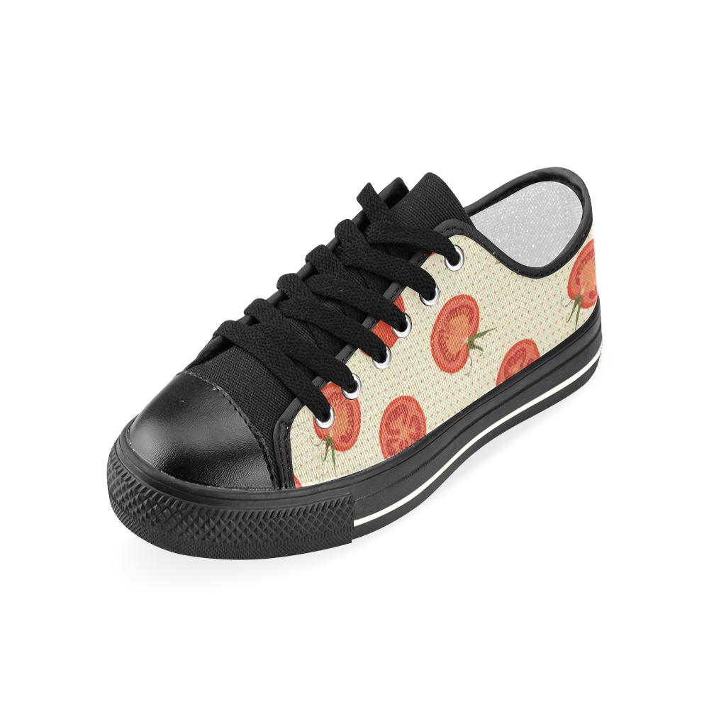 Tomato dot background Kids' Boys' Girls' Low Top Canvas Shoes Black