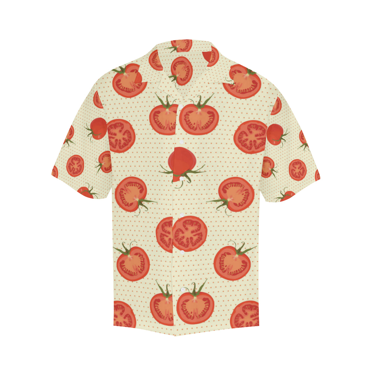 Tomato dot background Men's All Over Print Hawaiian Shirt is a uniqued design and limited item. It made to order, hand printed, and sewn with love in our factory.