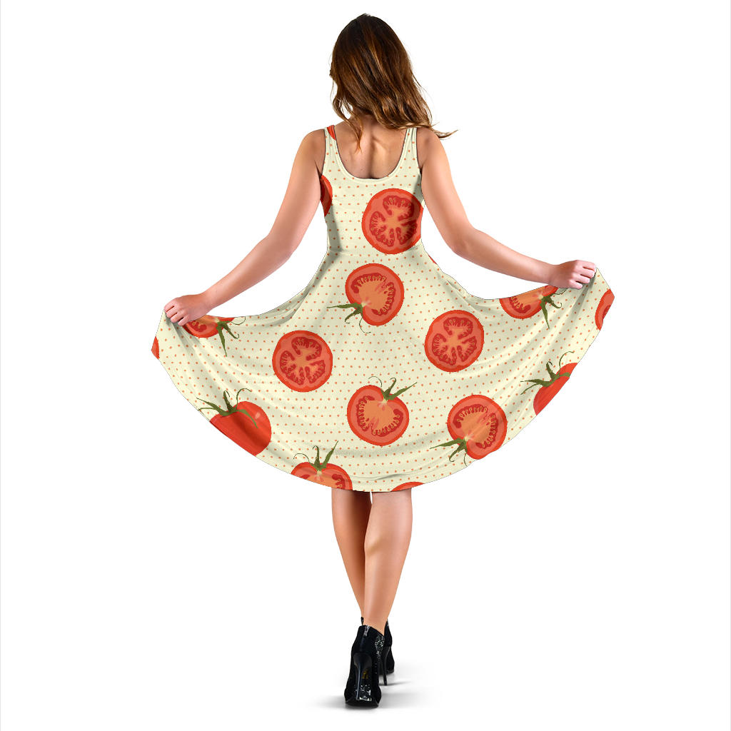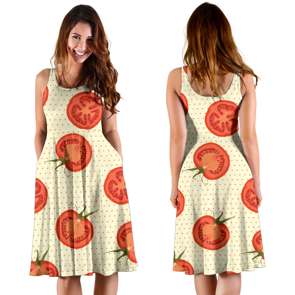 Tomato dot background Sleeveless Midi Dress is a uniqued design and limited item. It made to order, hand printed, and sewn with love in our factory.