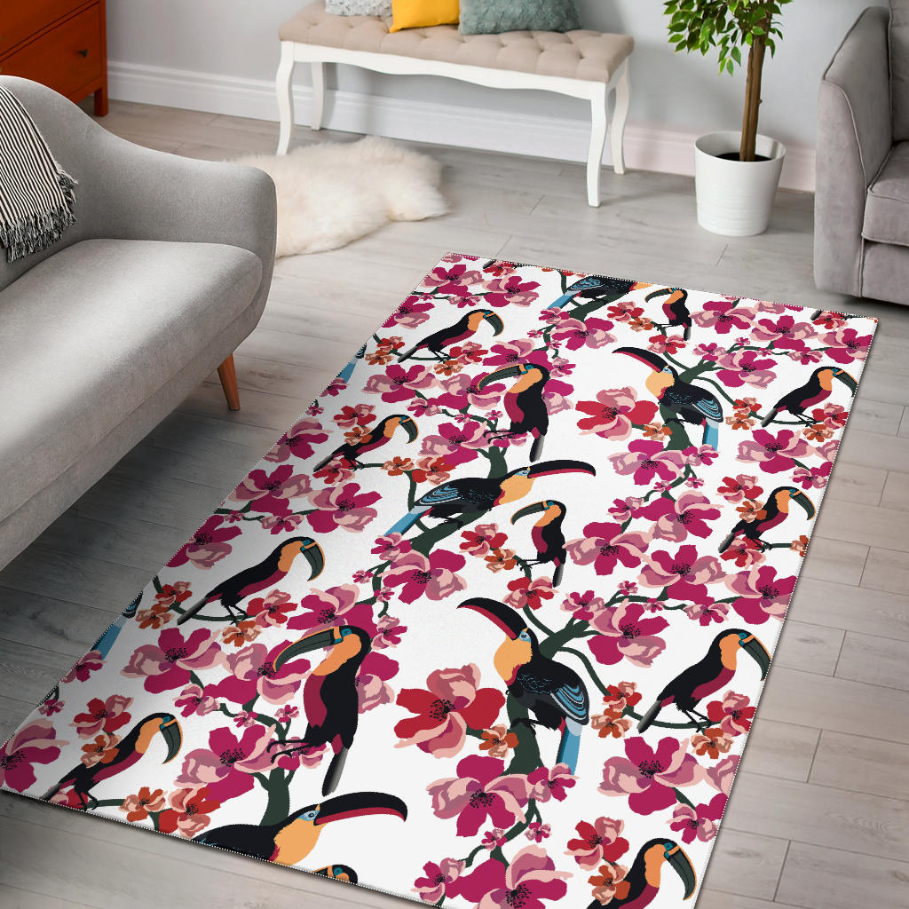 Toucan flower design pattern Area Rug is a uniqued design and limited item. It made to order, hand printed, and sewn with love in our factory.
