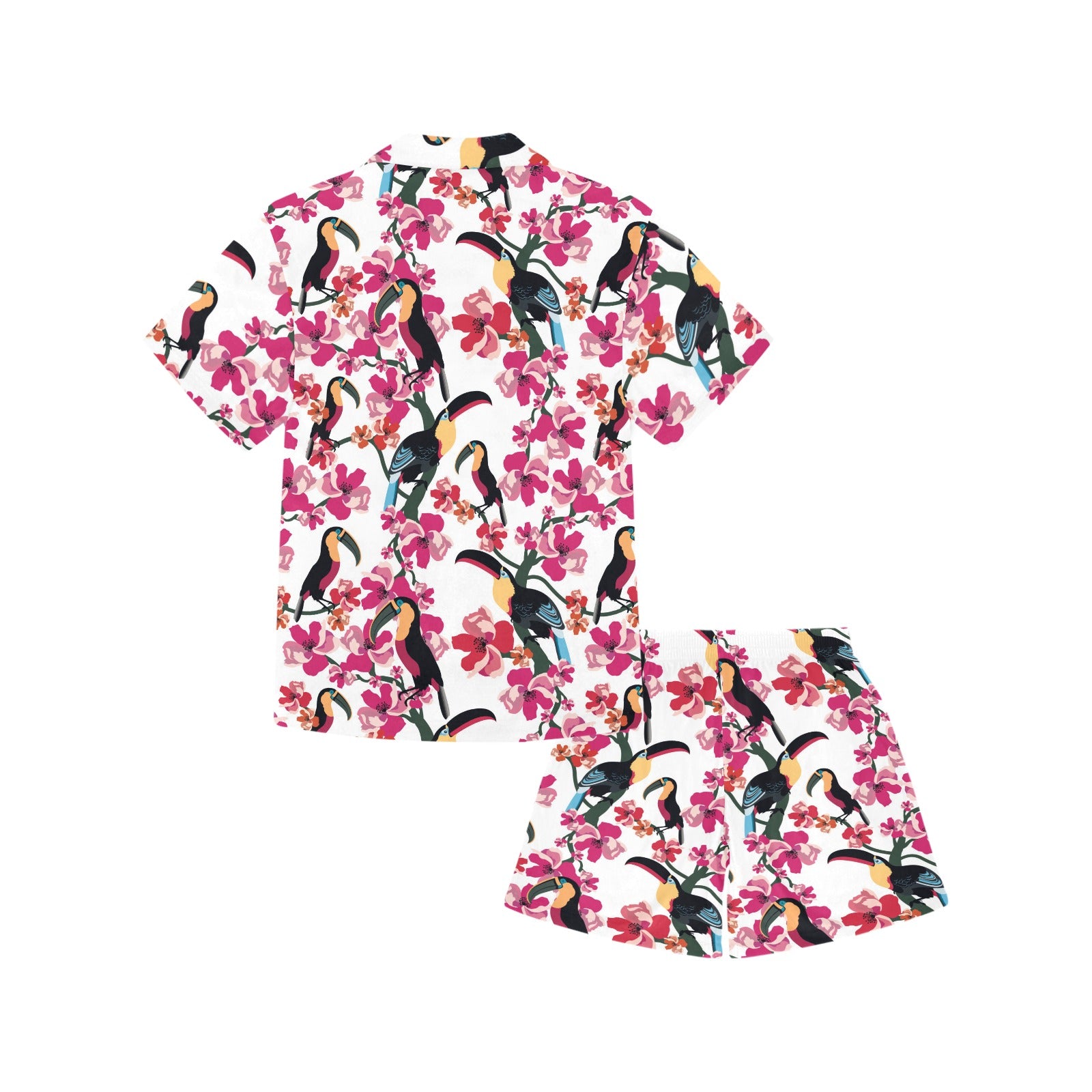 Toucan flower design pattern Kids' Boys' Girls' V-Neck Short Pajama Set