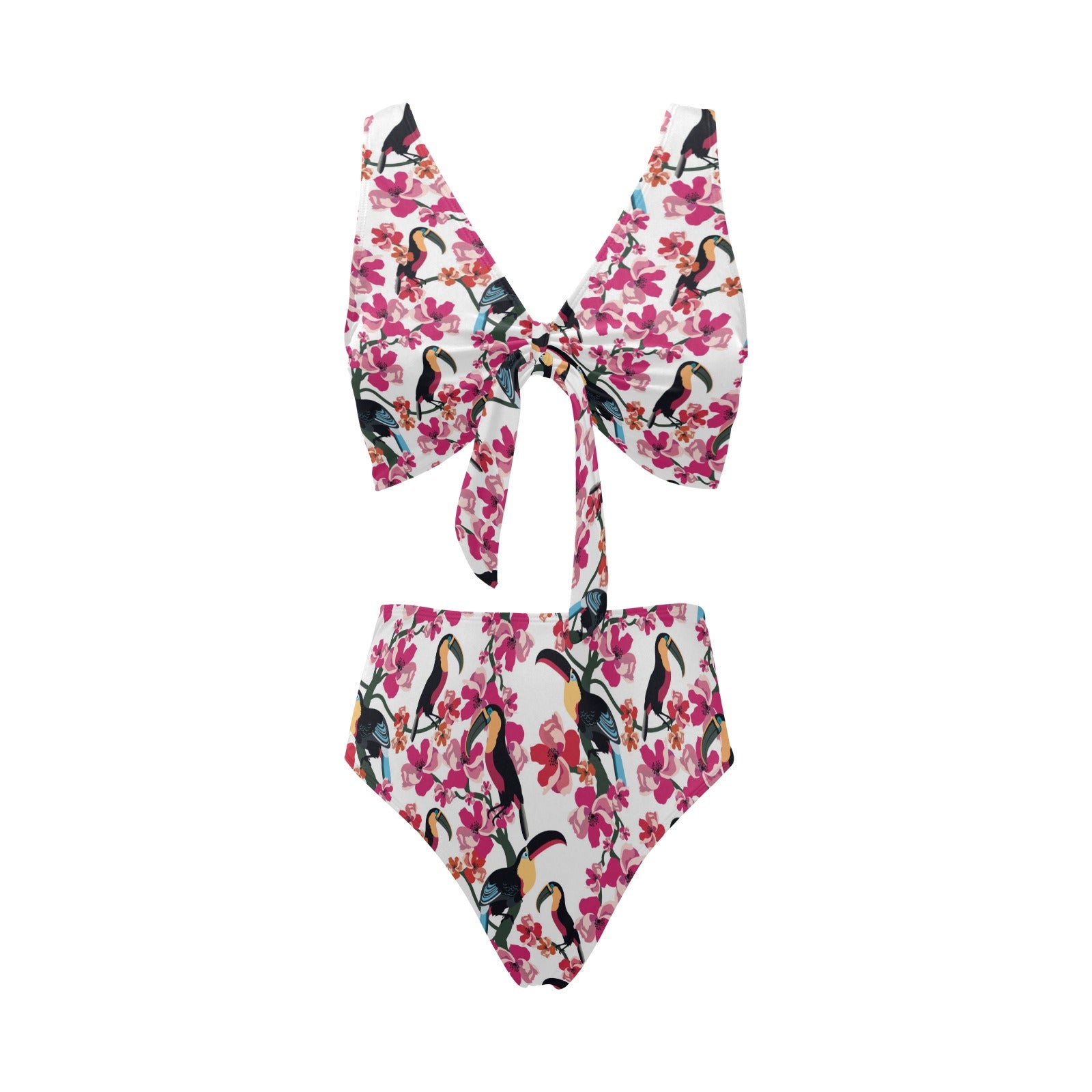 Toucan flower design pattern Chest Bowknot High Waisted Bikini Swimsuit