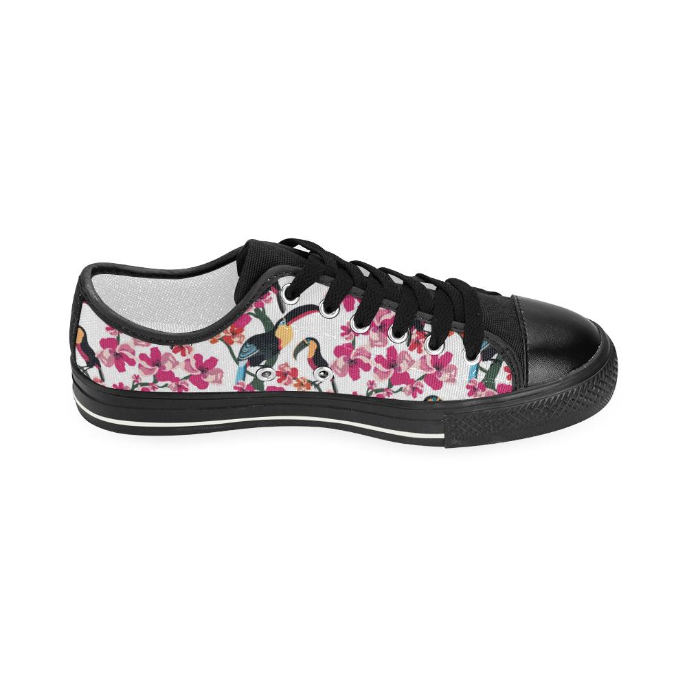 Toucan flower design pattern Kids' Boys' Girls' Low Top Canvas Shoes Black
