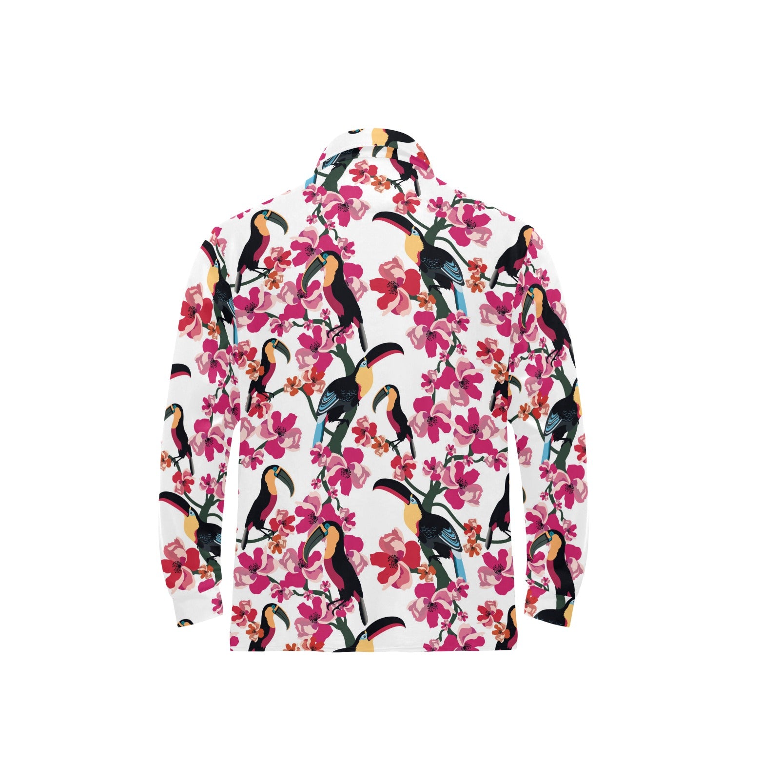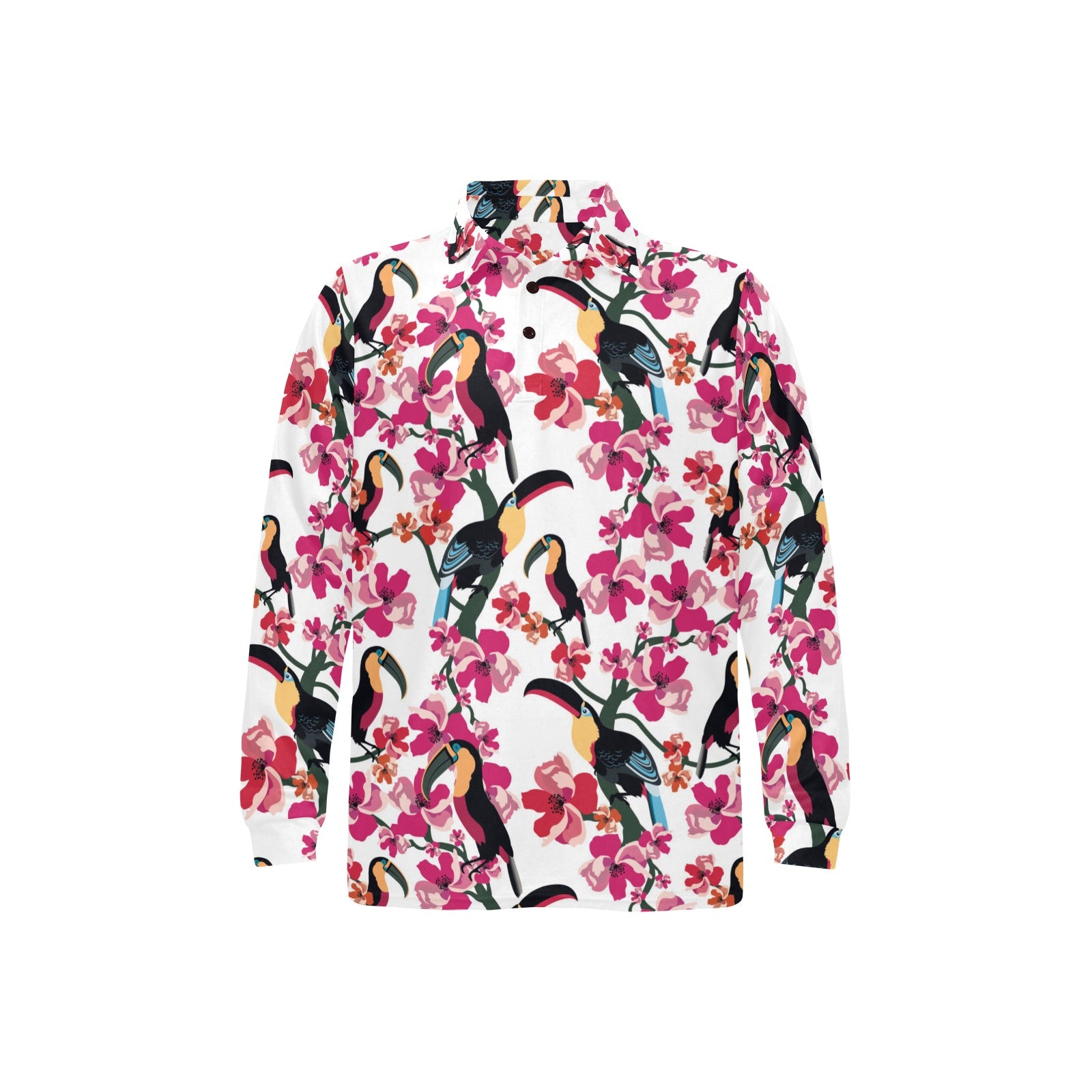 Toucan flower design pattern Men's Long Sleeve Polo Shirt