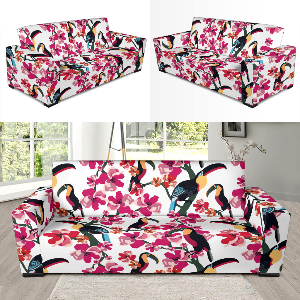Toucan flower design pattern Sofa Slipcover is a uniqued design and limited item. It made to order, hand printed, and sewn with love in our factory.