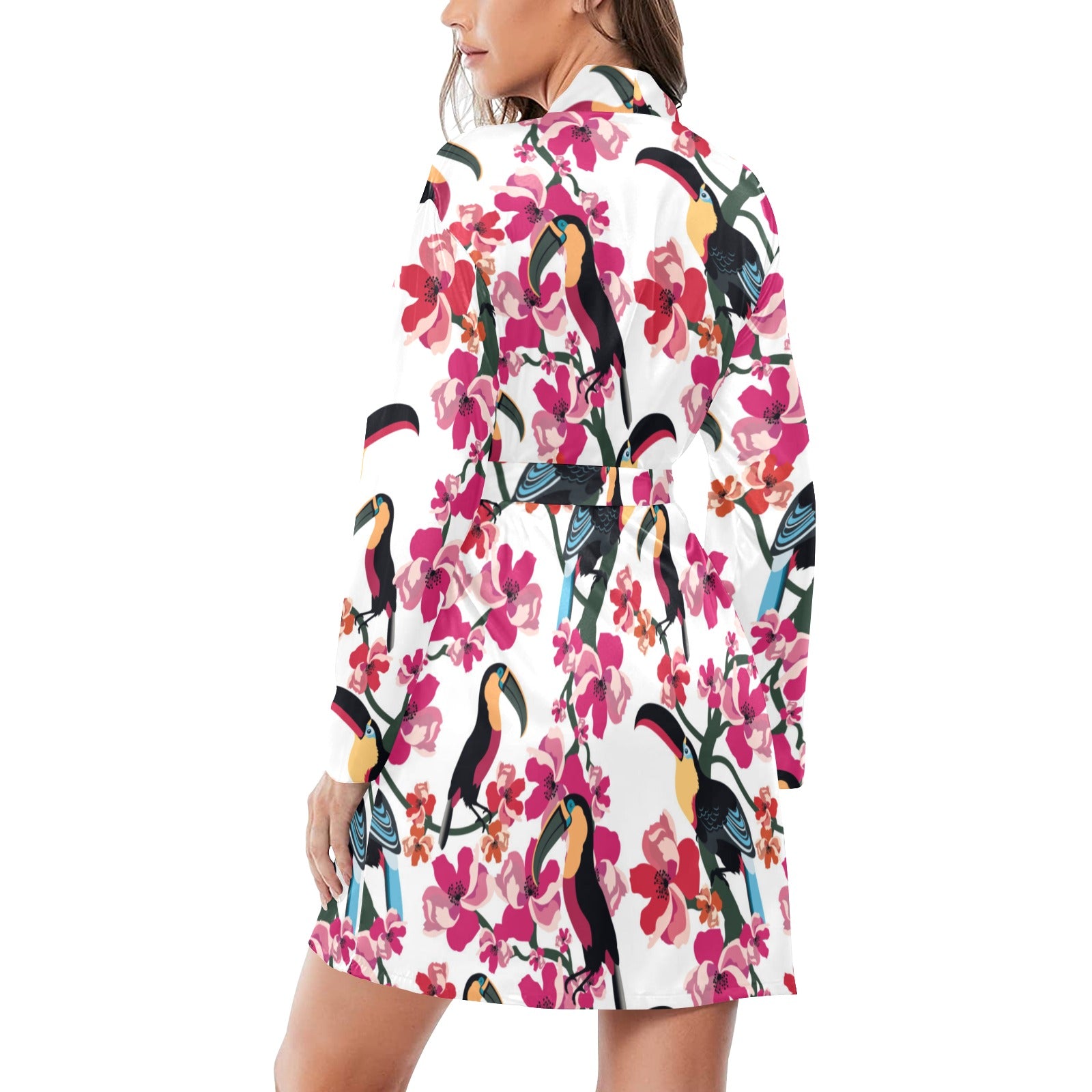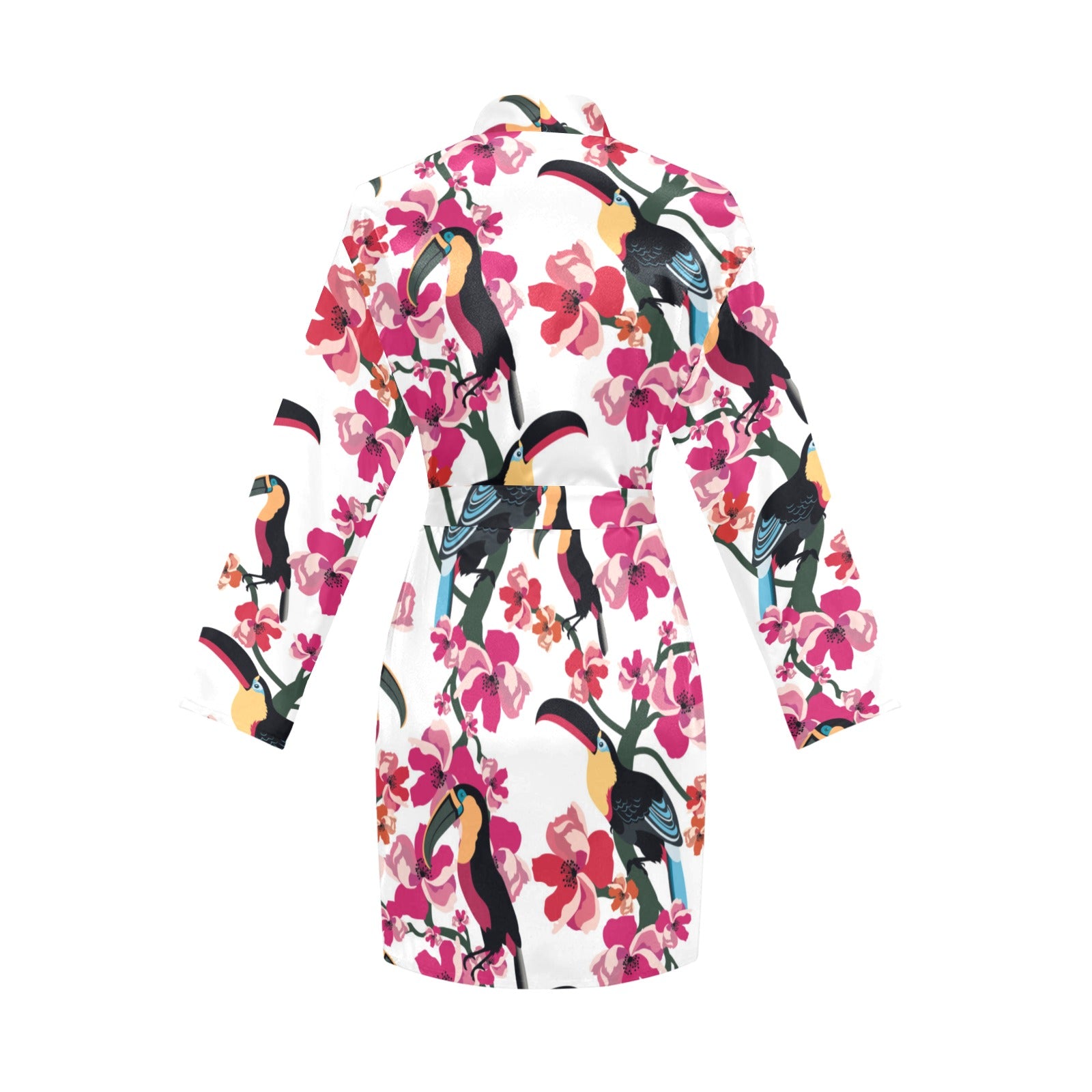 Toucan flower design pattern Women's Long Sleeve Belted Night Robe