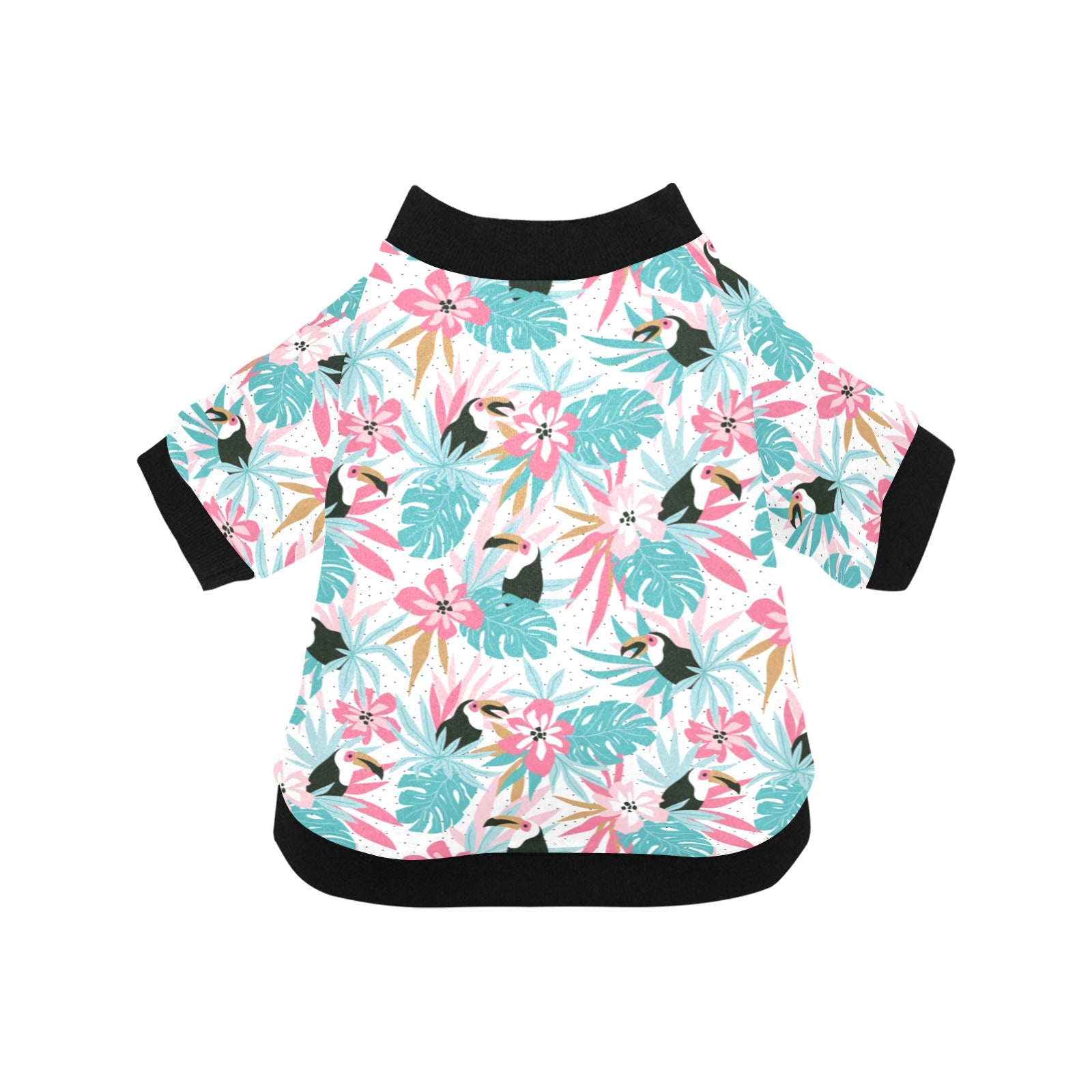 Toucan tropical flower leave pattern All Over Print Pet Dog Round Neck Fuzzy Shirt