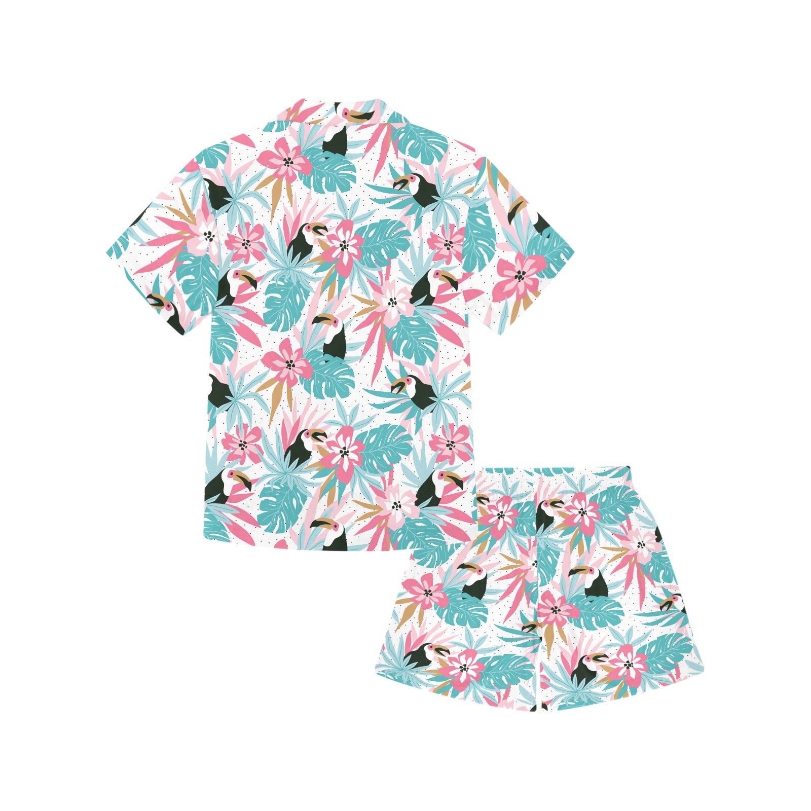 Toucan tropical flower leave pattern Kids' Boys' Girls' V-Neck Short Pajama Set