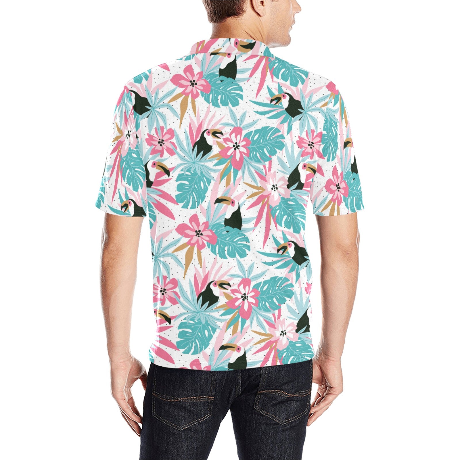 Toucan tropical flower leave pattern Men's All Over Print Polo Shirt