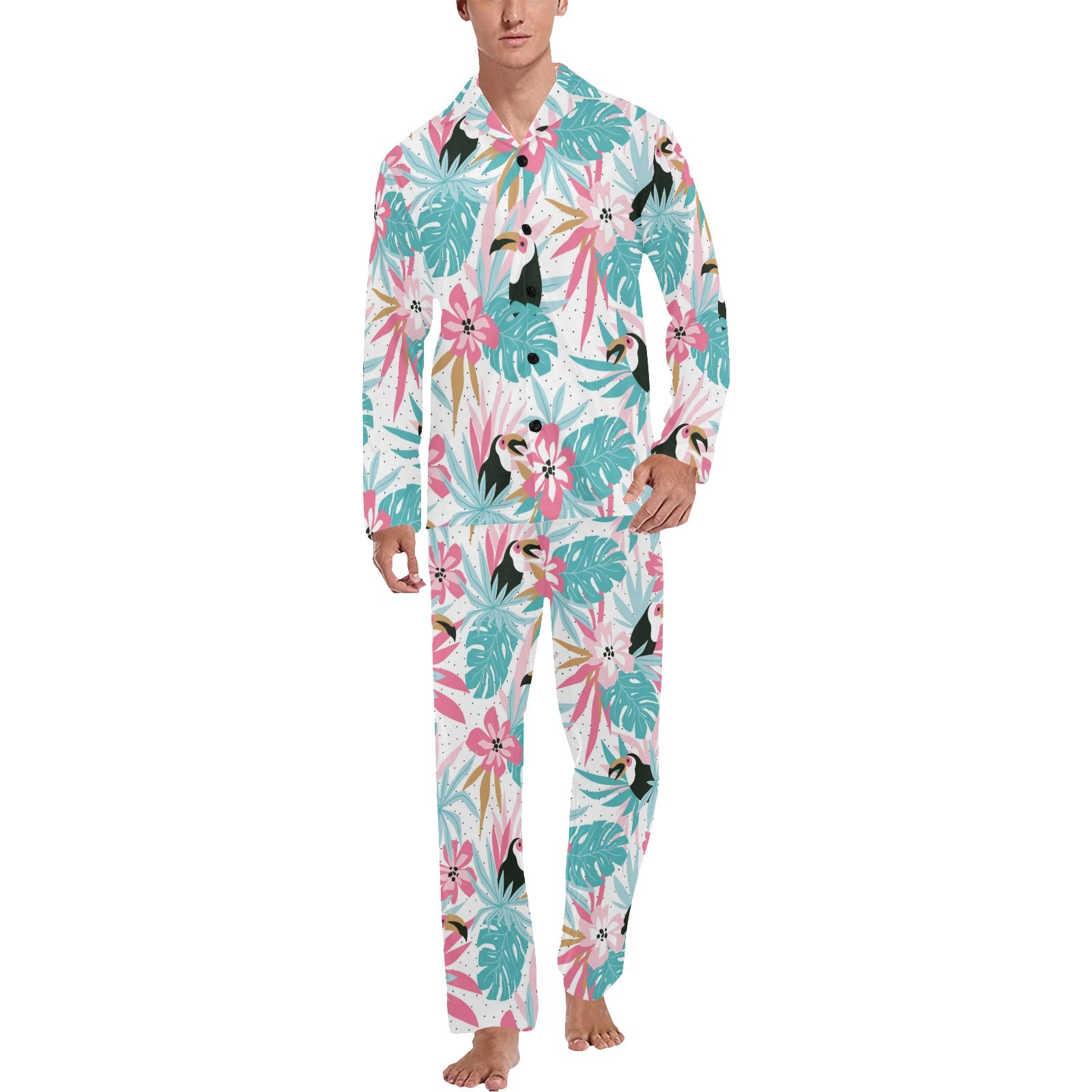 Toucan tropical flower leave pattern Men's Long Pajama Set