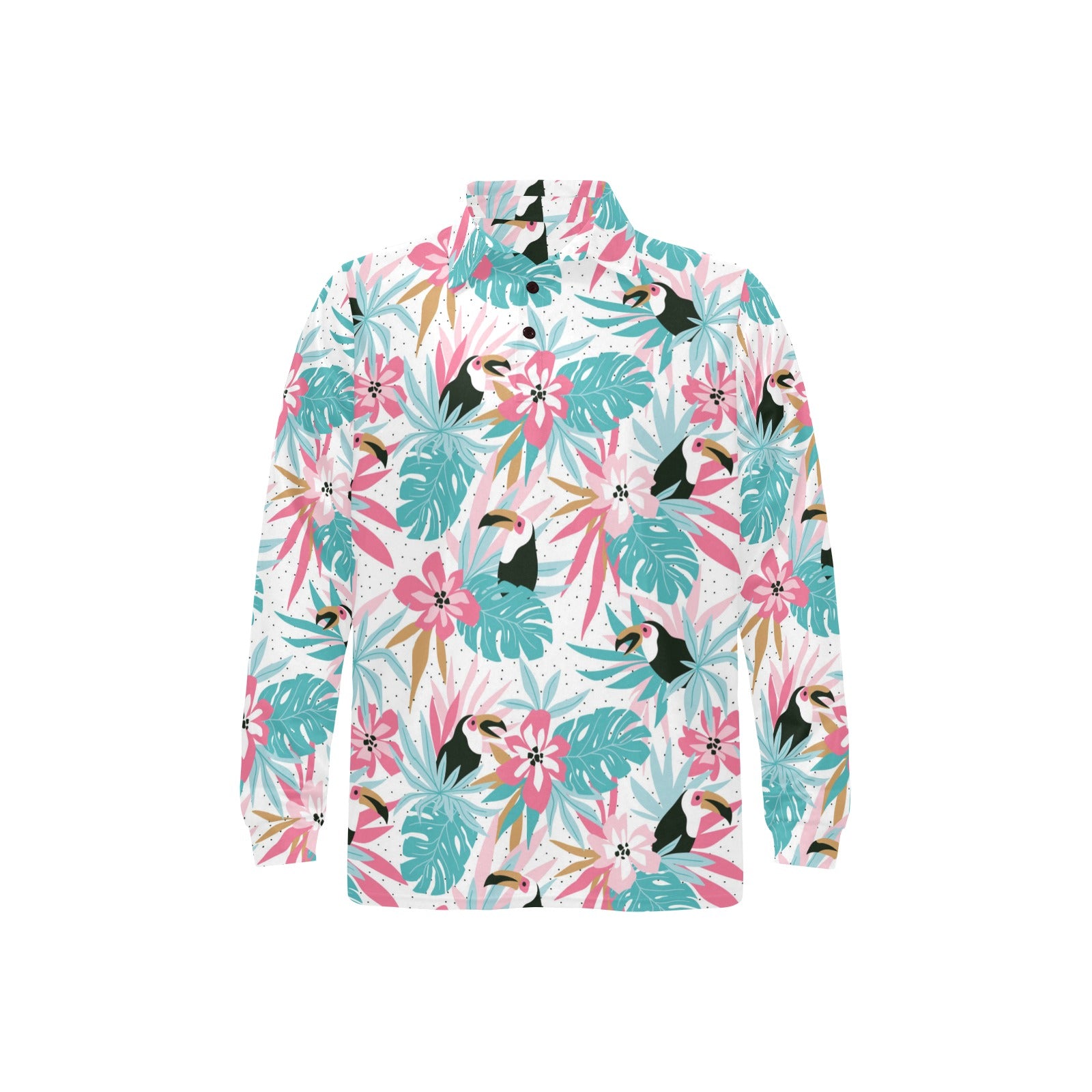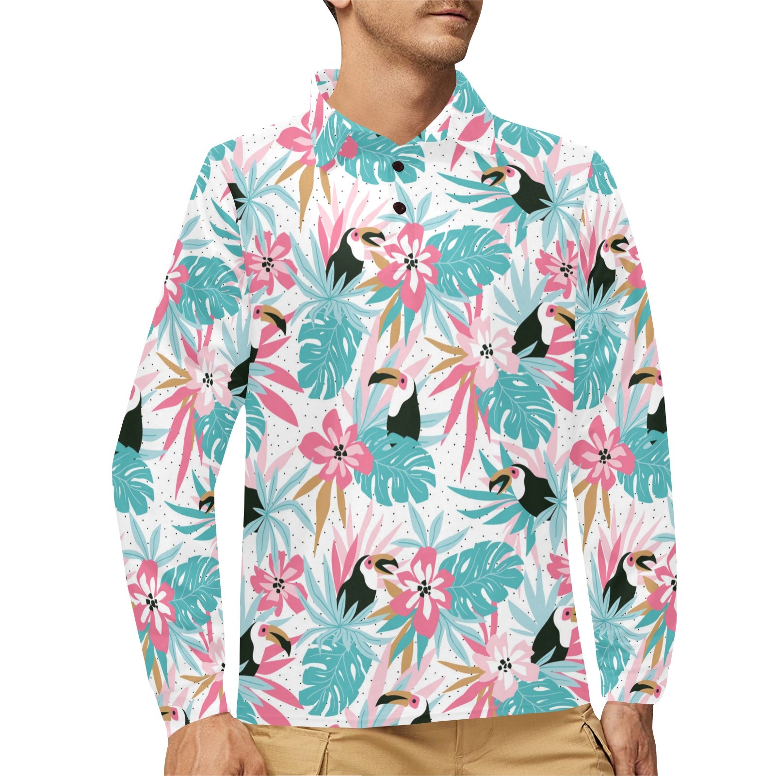 Toucan tropical flower leave pattern Men's Long Sleeve Polo Shirt