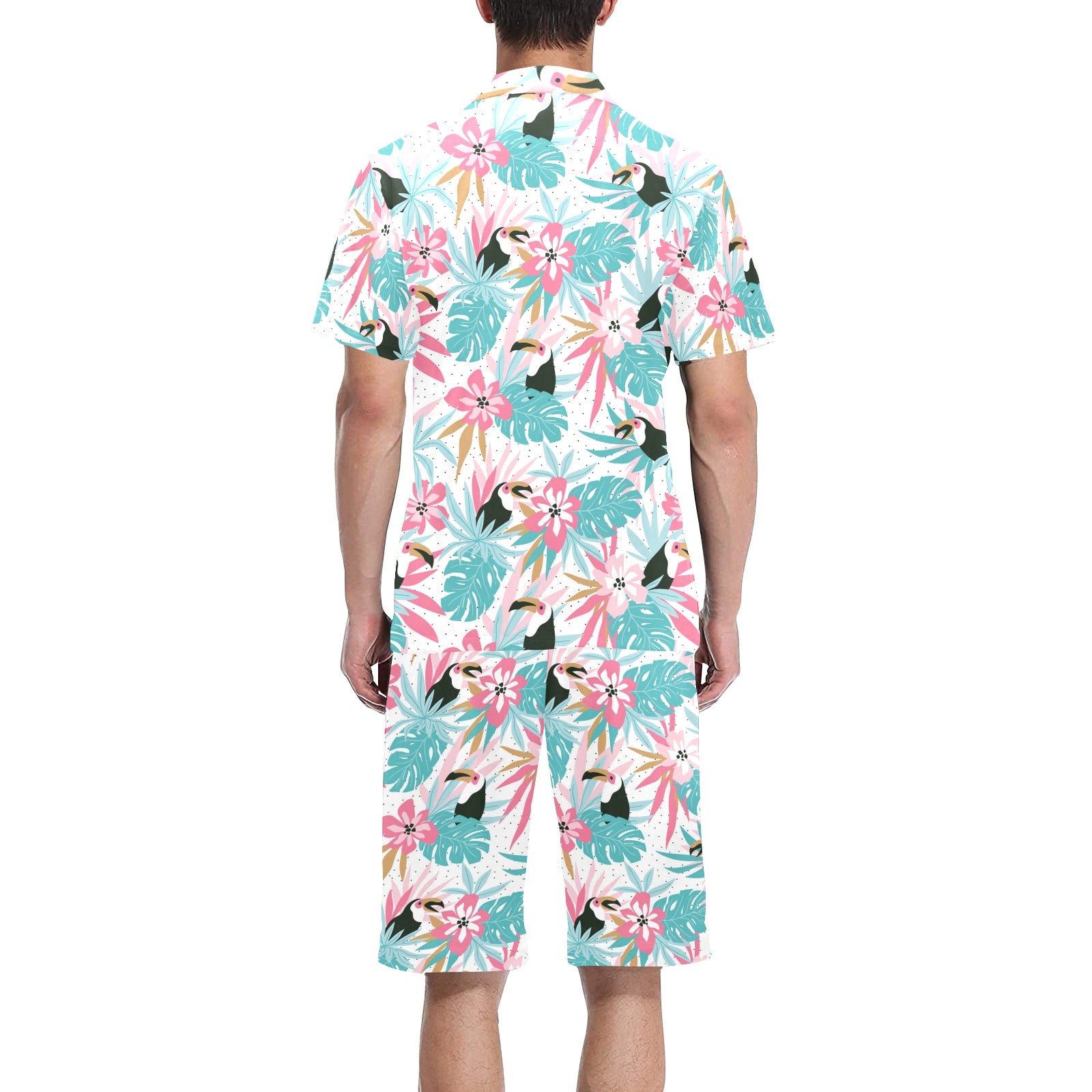 Toucan tropical flower leave pattern Men's V-Neck Short Pajama Set