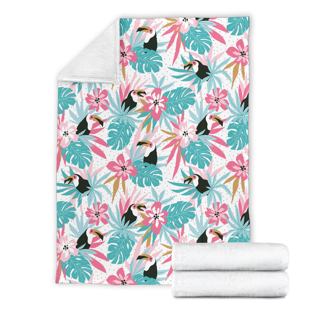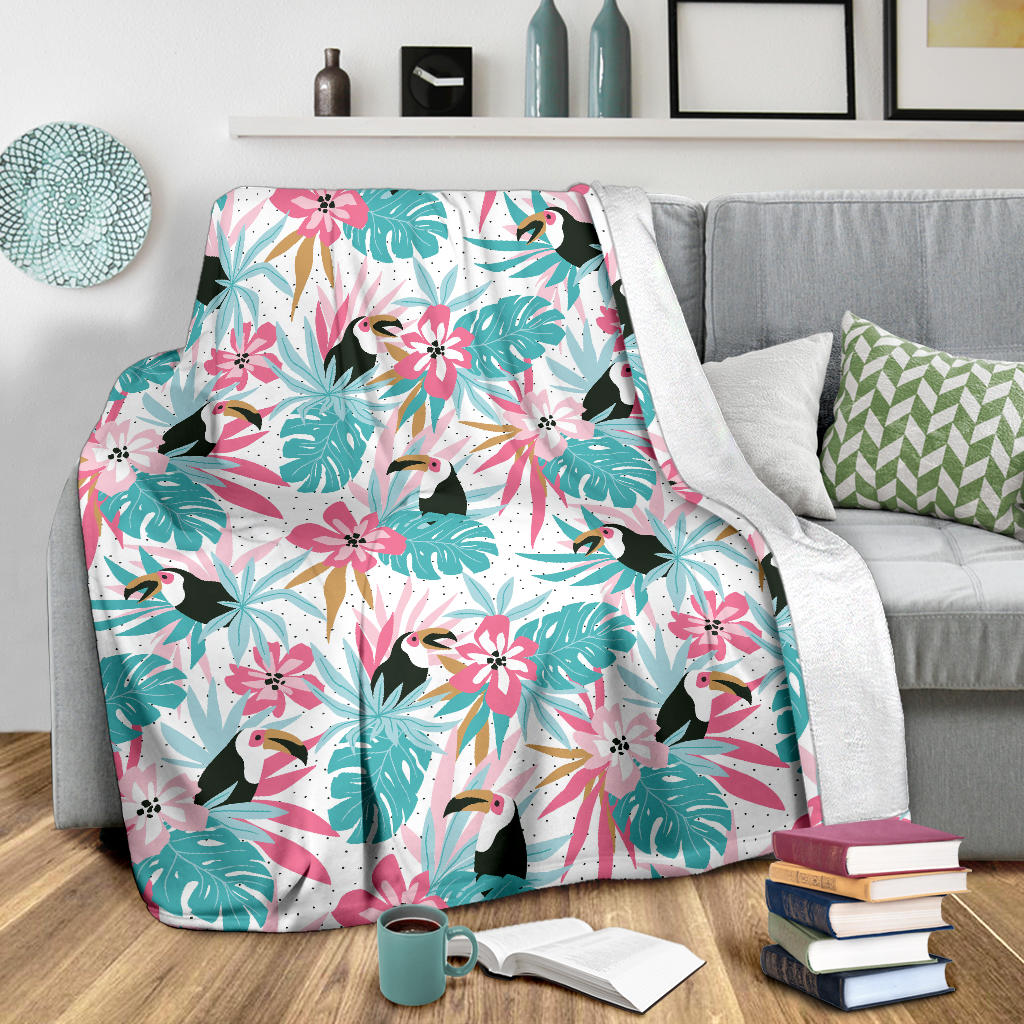 Toucan tropical flower leave pattern Premium Blanket is a uniqued design and limited item. It made to order, hand printed, and sewn with love in our factory.