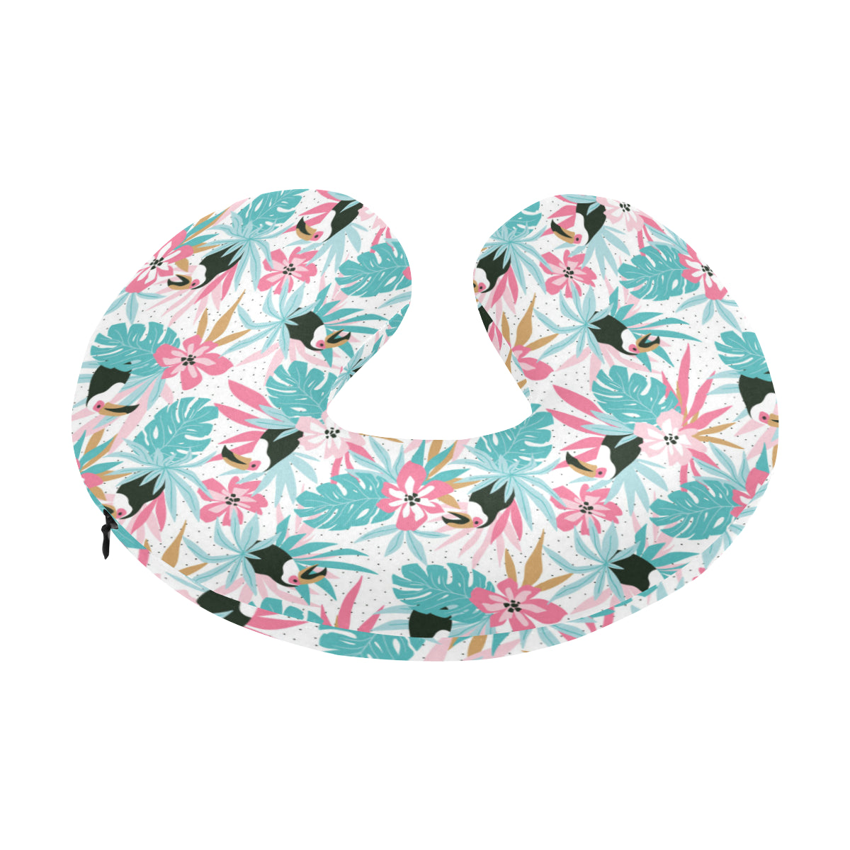 Toucan tropical flower leave pattern U-Shaped Travel Neck Pillow